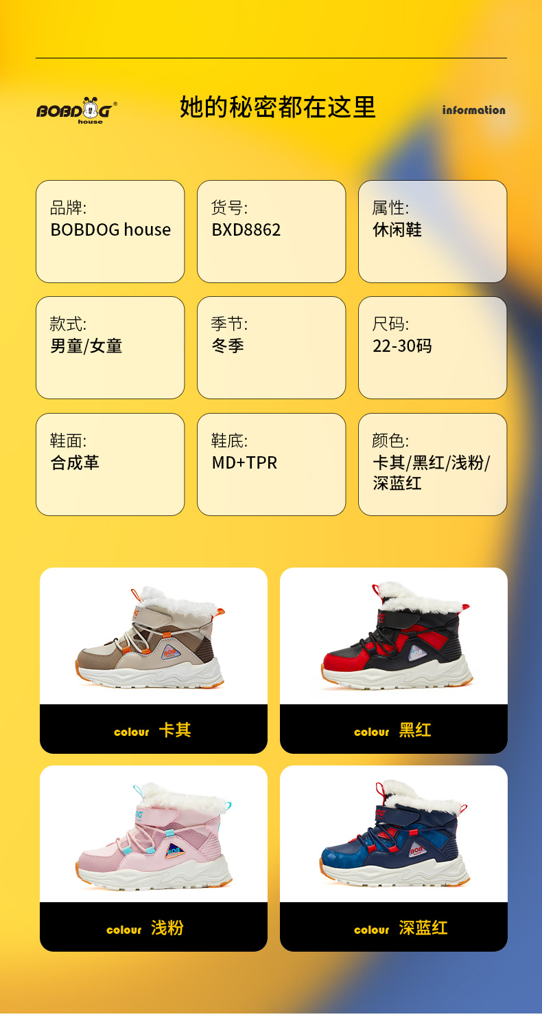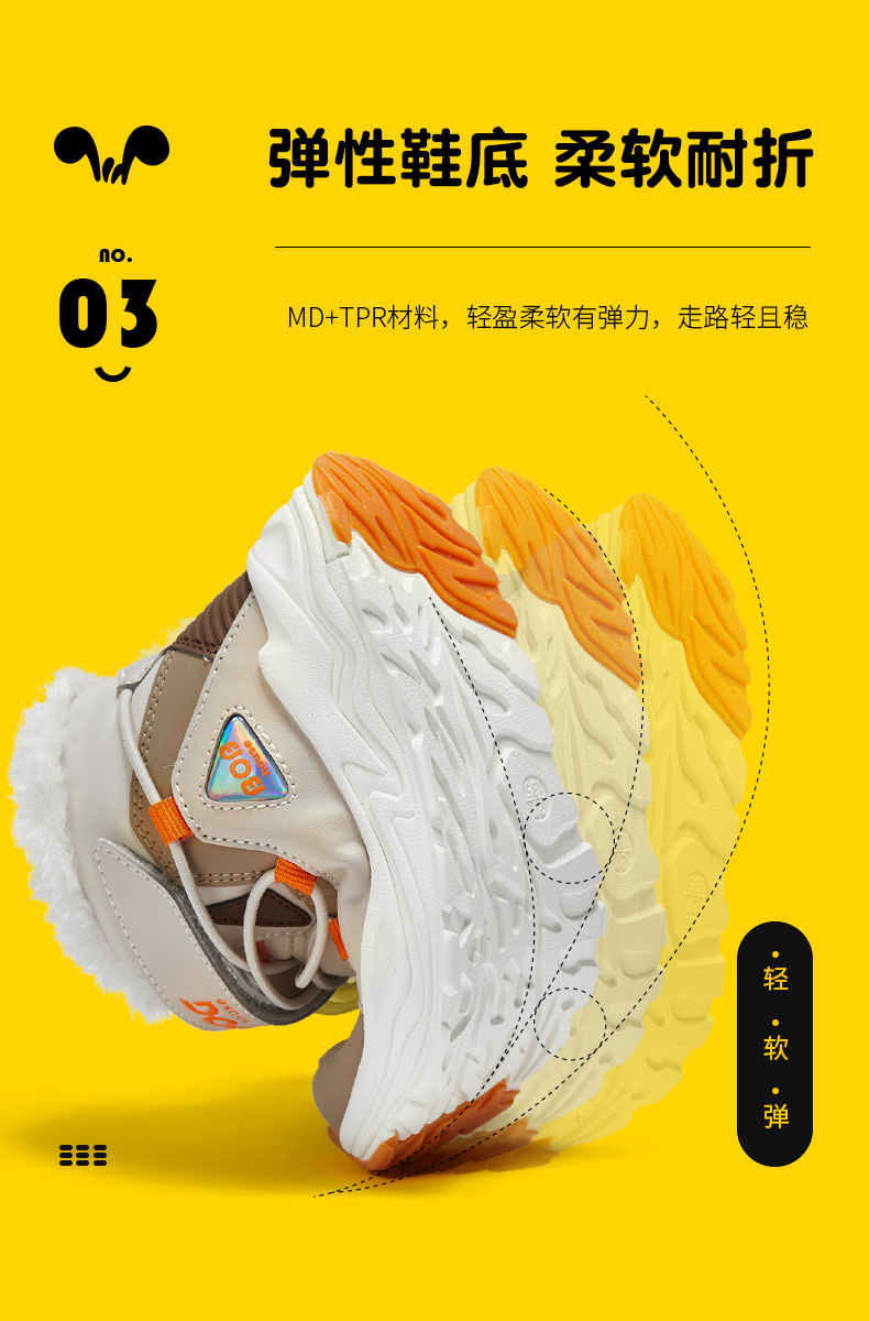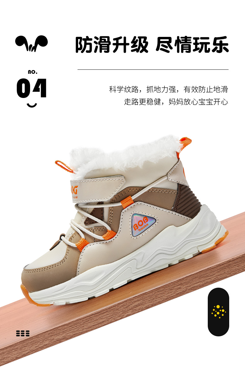 加绒加厚~便捷的魔术贴开合,根据脚型调节松紧,方便穿脱~鞋底采用大底缓震材质,弹性优于普通运动鞋~柔软易弯折,让孩子走路无负担~多款配色,打造个性潮流!