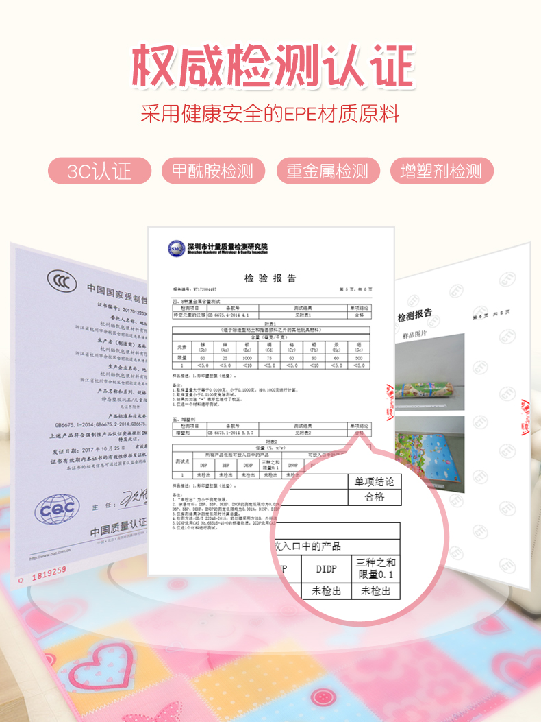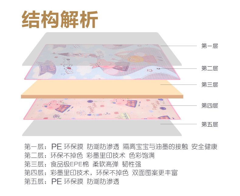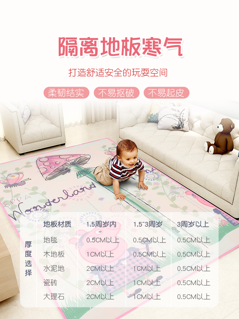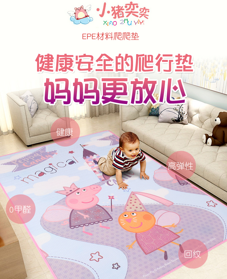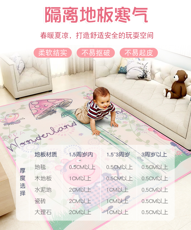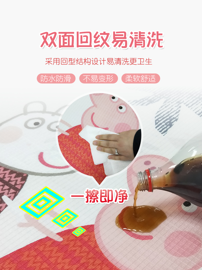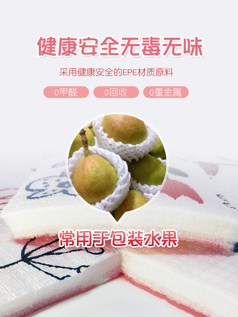 EPE高密度材质,安全无味,环保耐用,拒水防污易打理,双面真空金字塔纹理,脚踩不打滑,独有纳米气垫簇,有效防冷隔热,四季皆宜,双面图案+早教方格,让孩子在玩的同时成长【赠运费险】