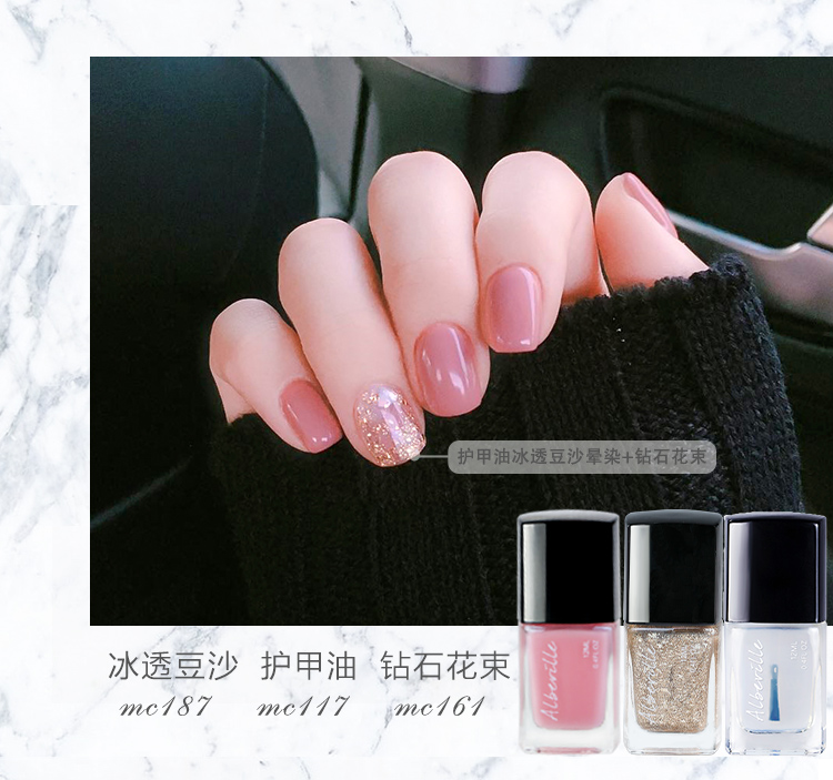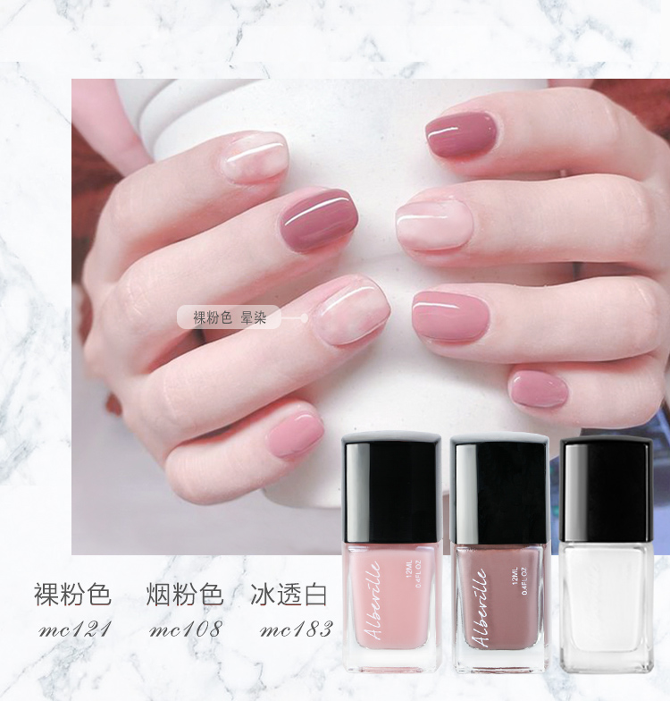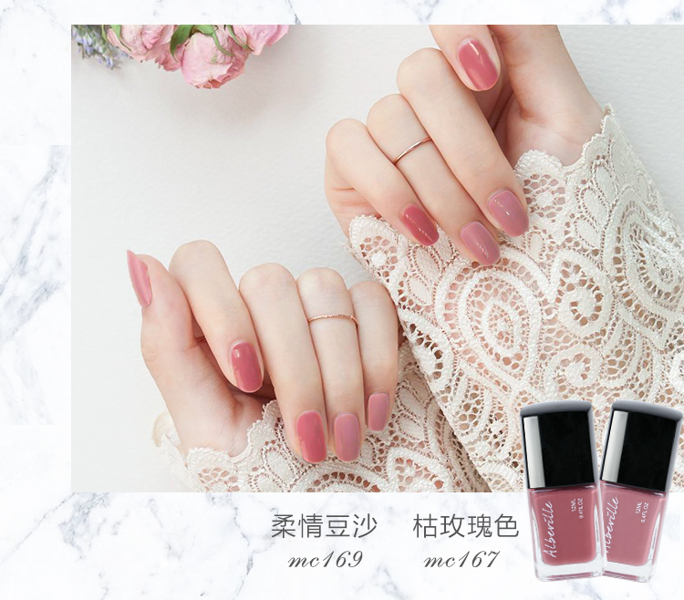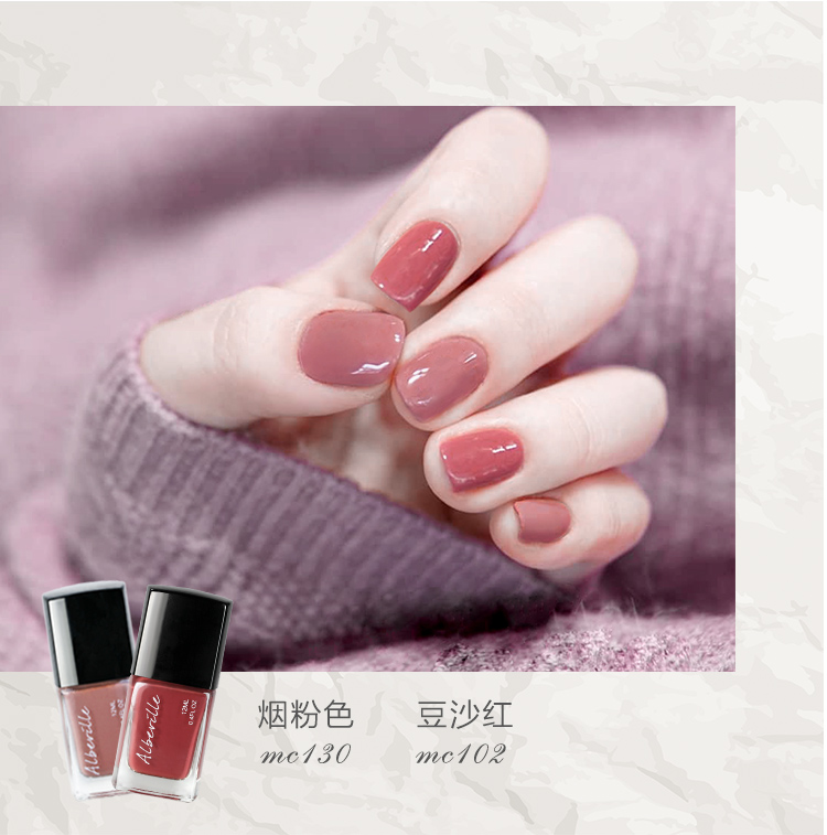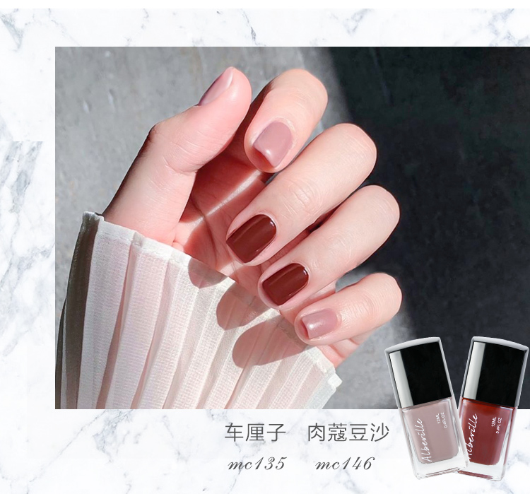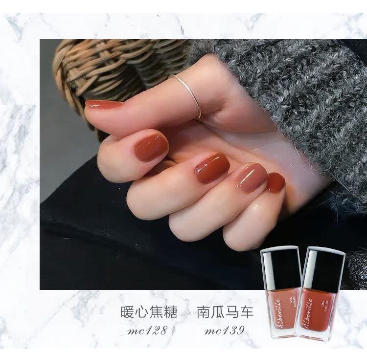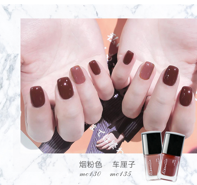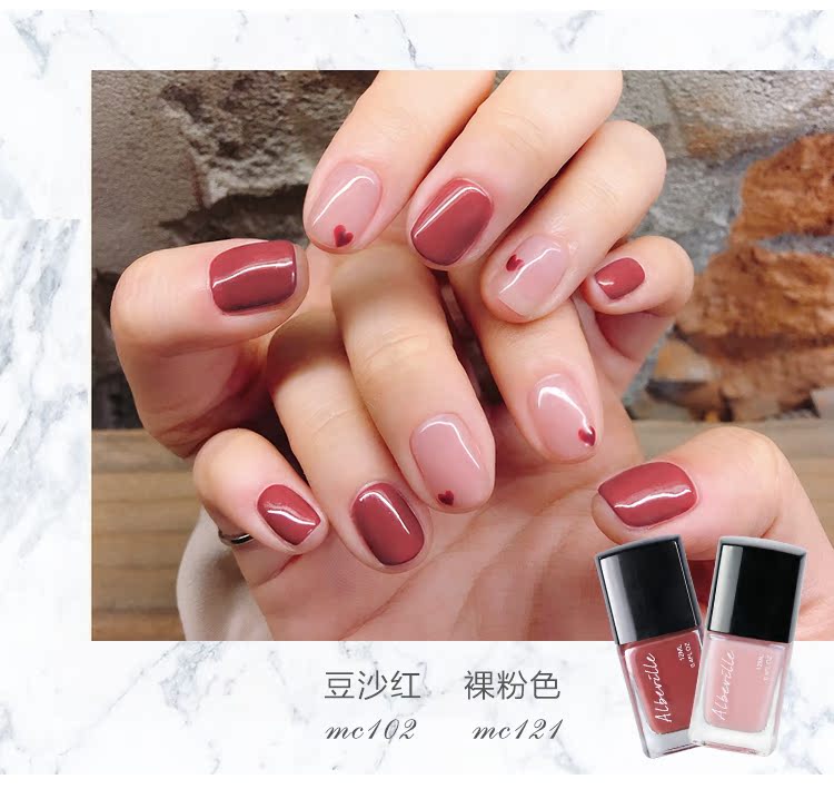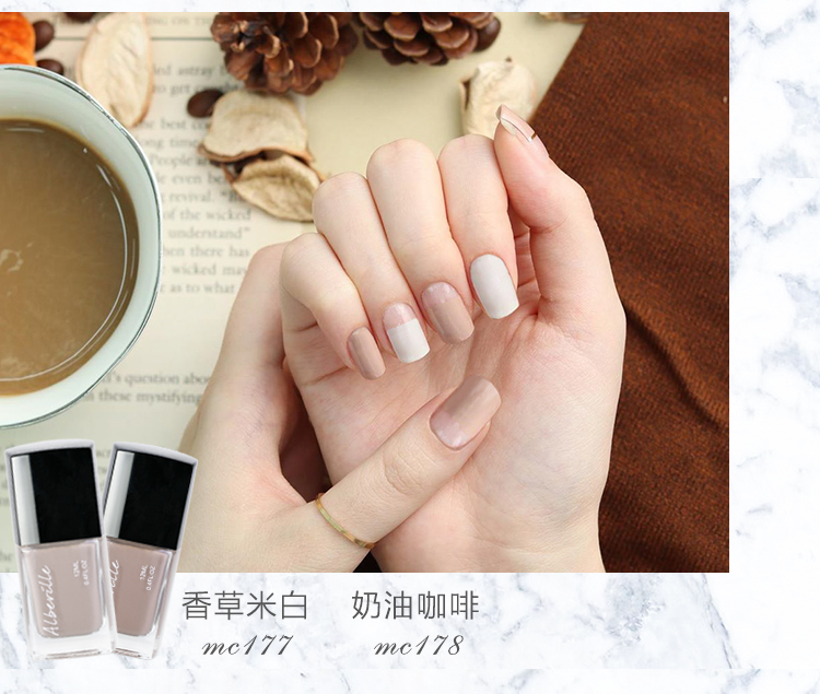 Albeville裸色指甲油免烤快干豆沙色可拨撕拉式持久无毒无味防水