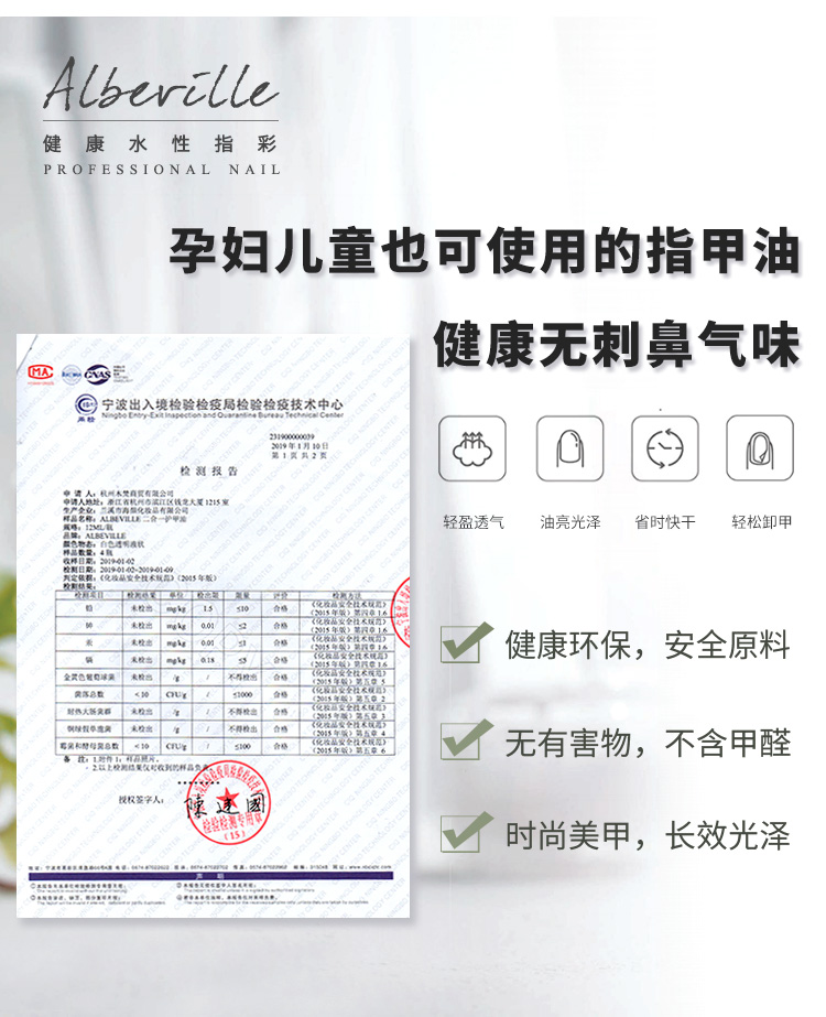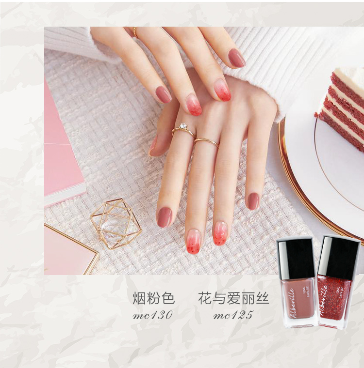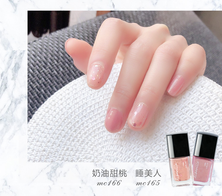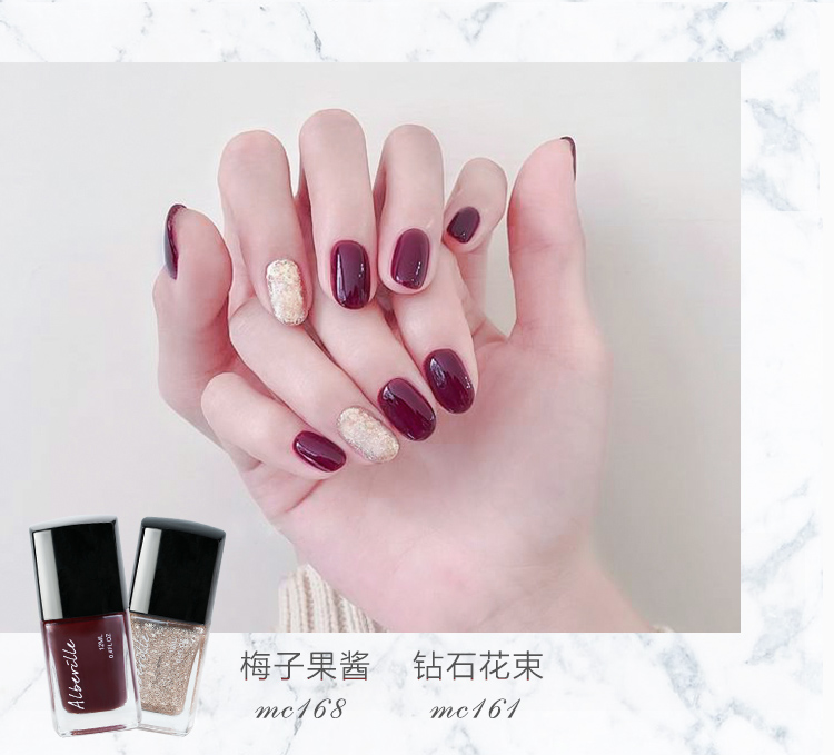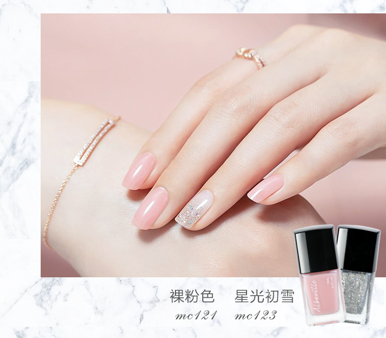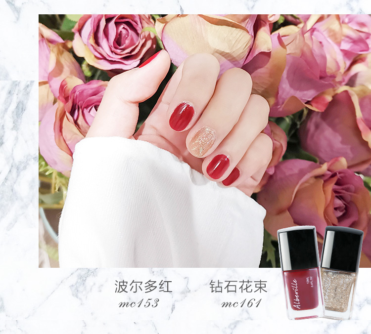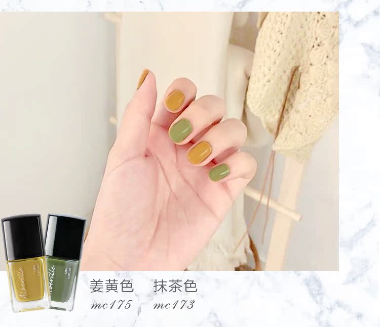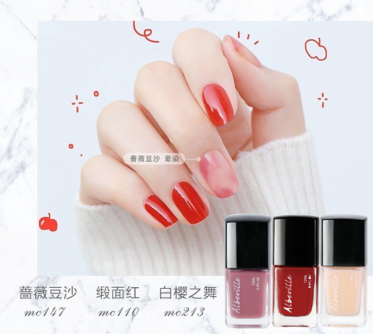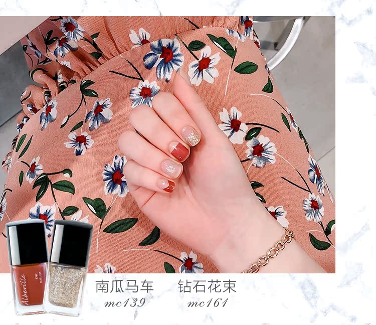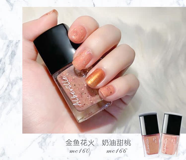Albeville裸色指甲油免烤快干豆沙色可拨撕拉式持久无毒无味防水