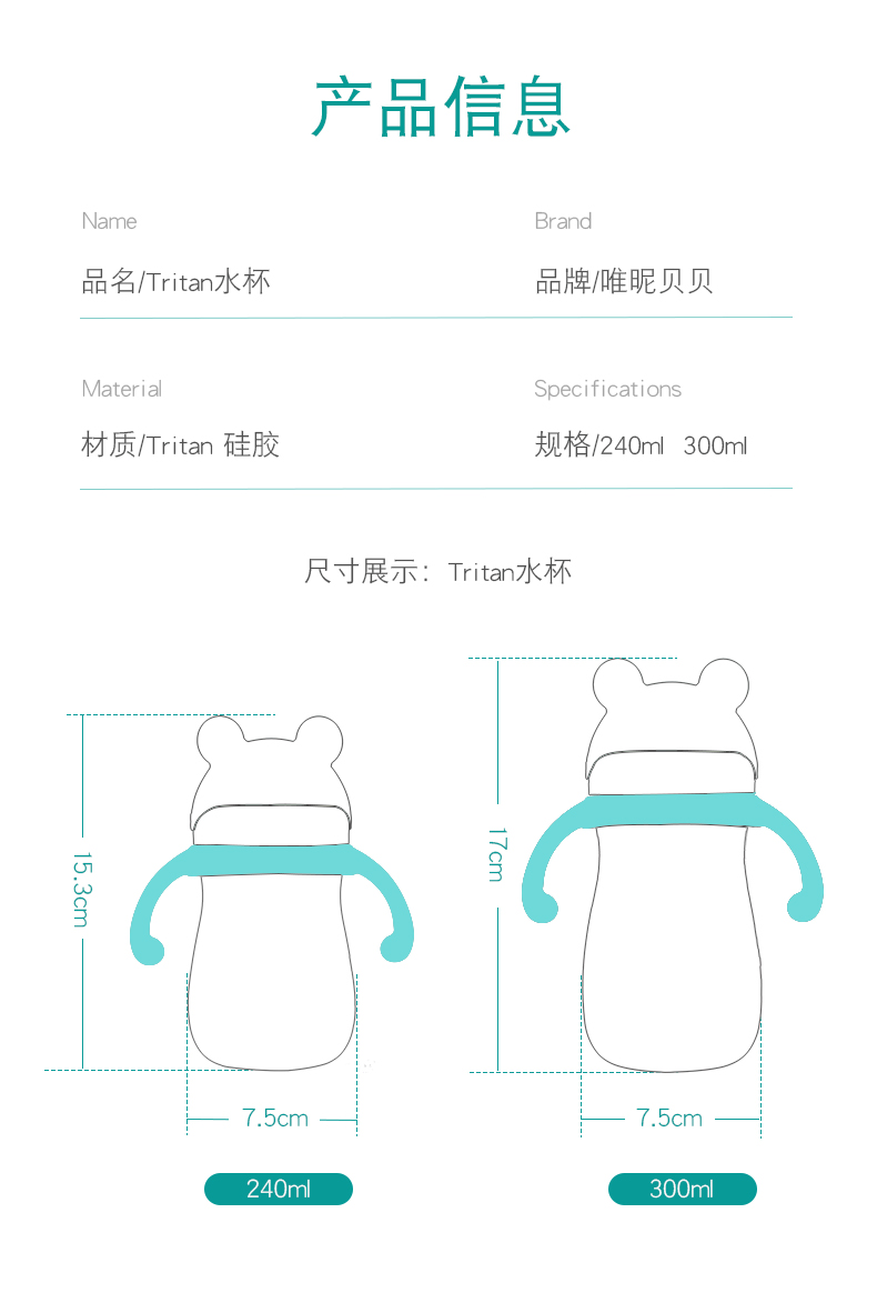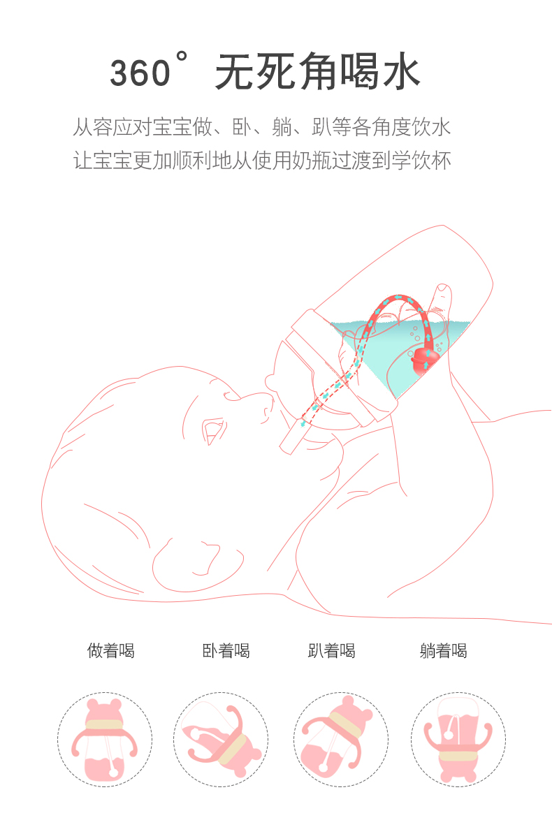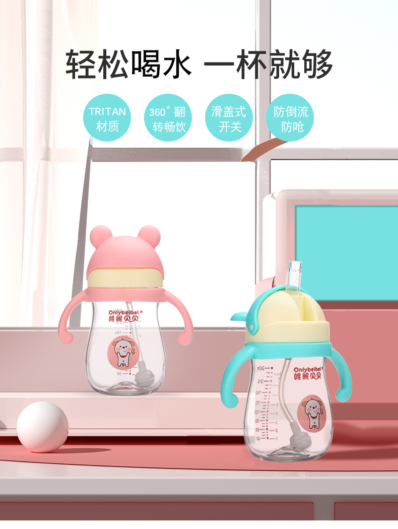 宝宝学饮杯【V型吸管】咬合出水防漏防呛设计,易握手柄,滑盖设计,防尘防漏,纯净tritan硅胶材质,欧美婴幼儿用品指定材质,防摔,多色可选,baby爱上喝水,就是这么简单【赠运费险】