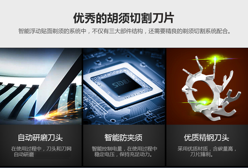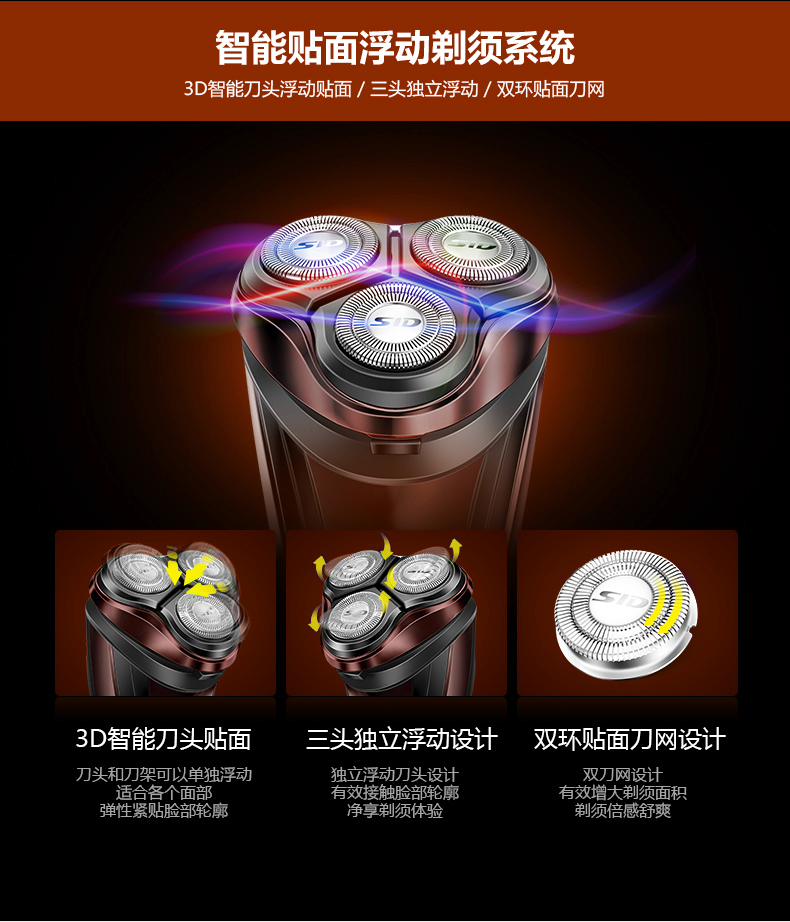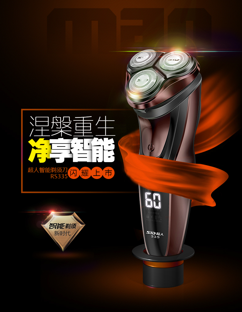 SID/超人RS335电动剃须刀 充电式三头浮动刮胡刀 全身水洗