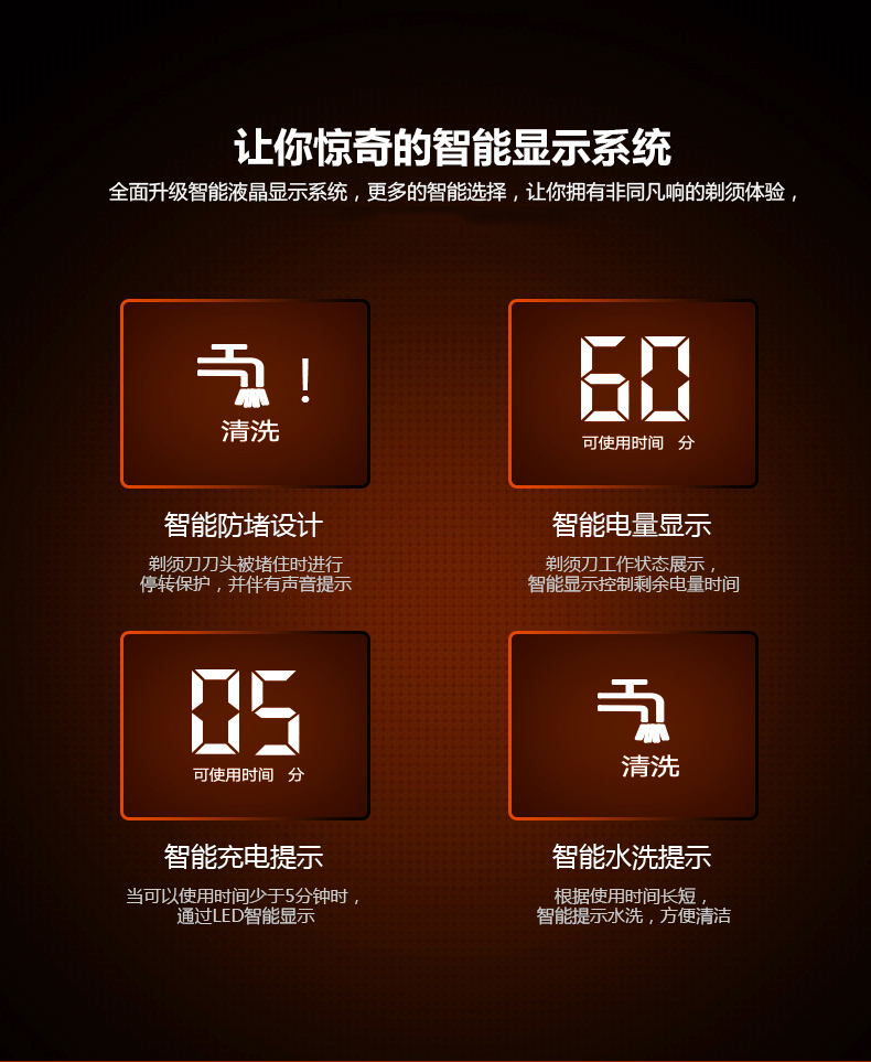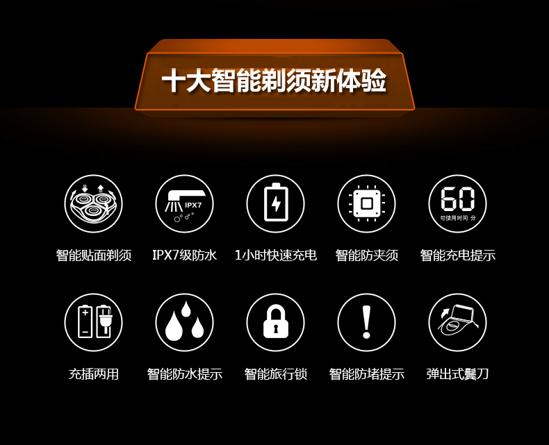 全身水洗、浮动系统、轻触开关、充电显示、智能防夹须、弹出式修剪刀、1次充电60分钟使用,双环贴面剃须,剃须更顺滑,更彻底。【赠运费险】