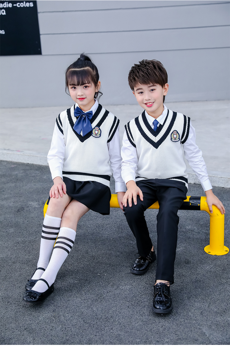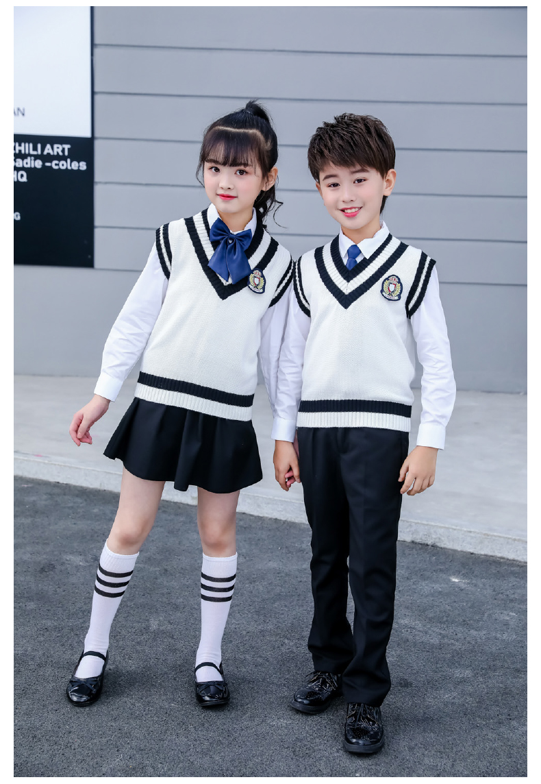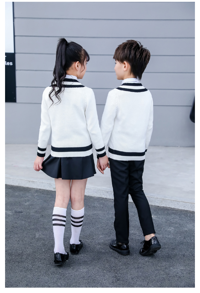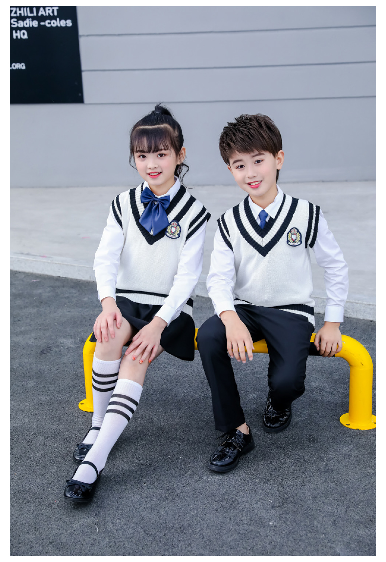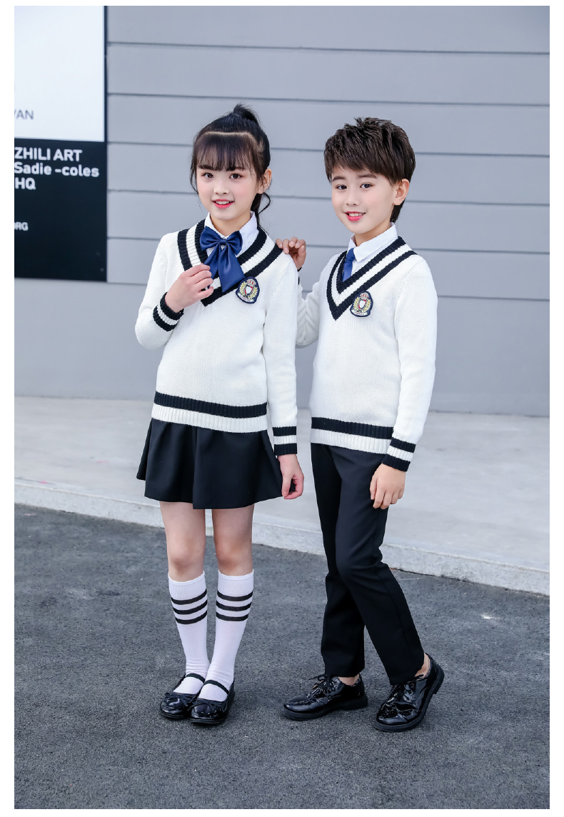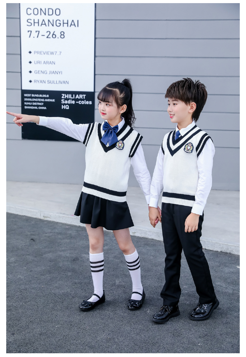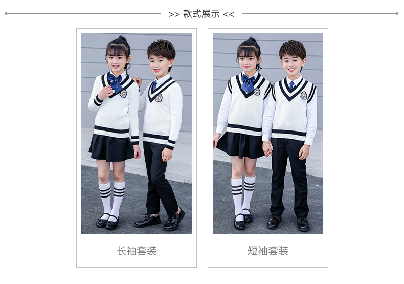 长短袖校服套装,送长袜+领结+徽章,精选优质面料,设计新颖,款式经典,搭配时尚领结,凸显高贵大方,而且穿着舒适,不管是当做演出服还是校服都可以,大中小款,长短裤都有。