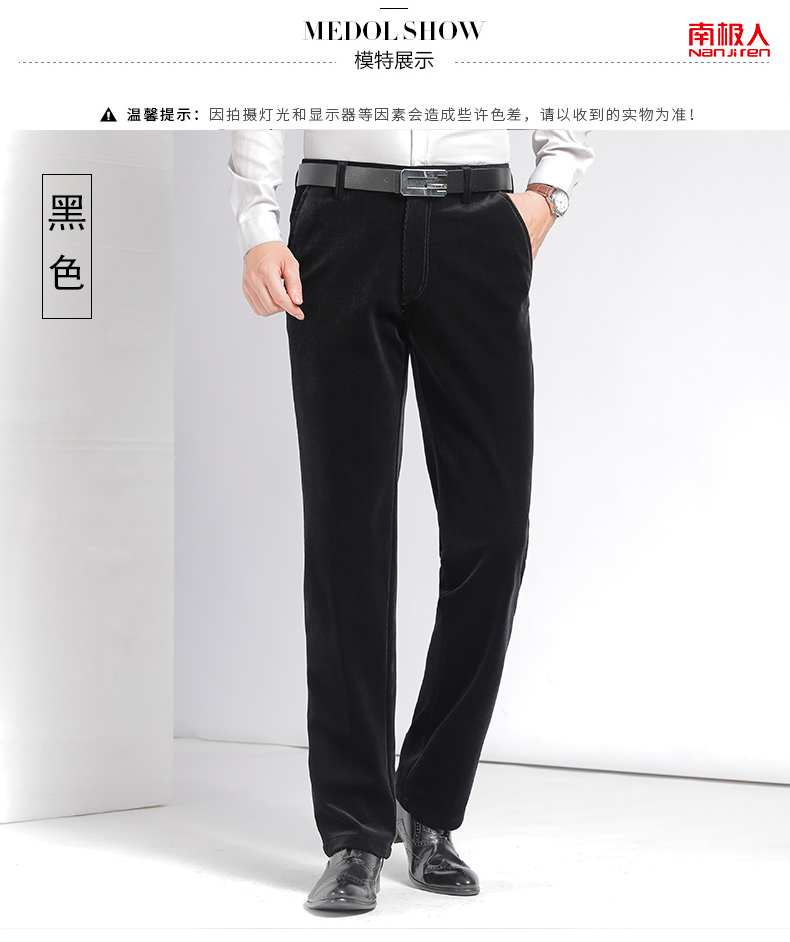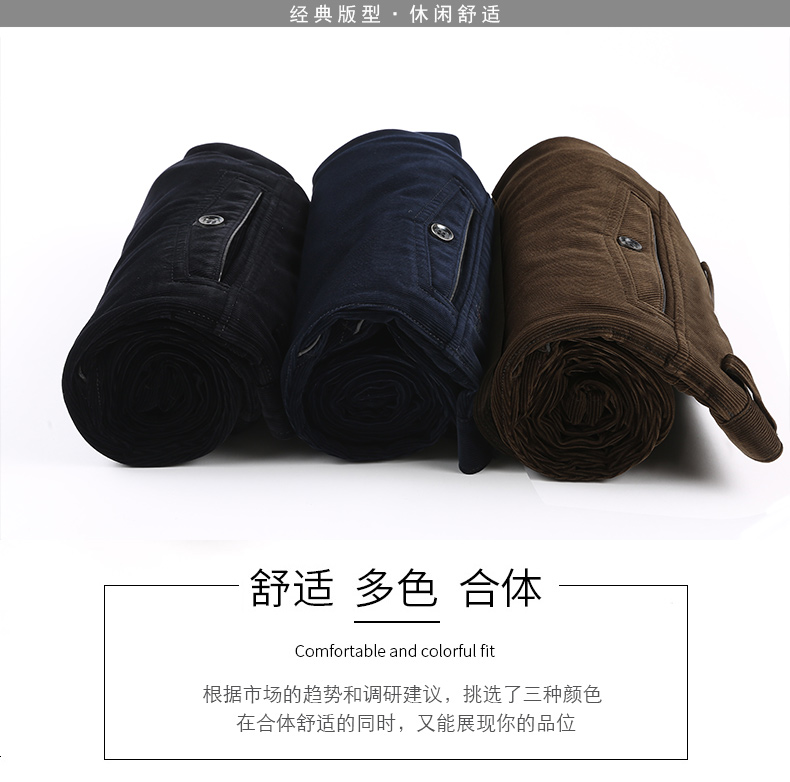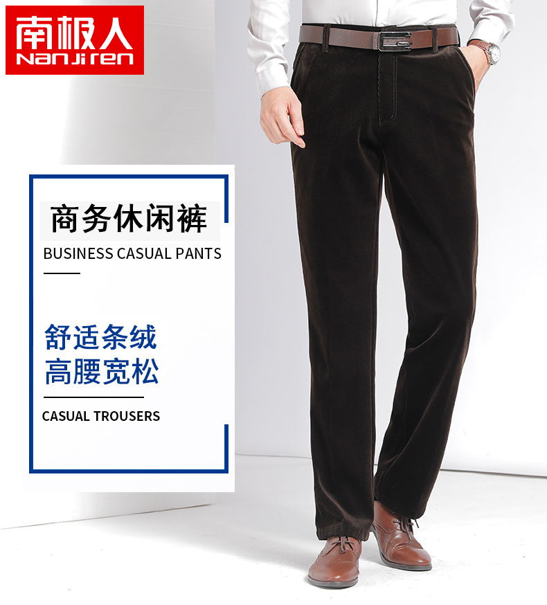 南极人男士休闲裤秋冬季新款中老年高腰加厚保暖爸爸装灯芯绒长裤