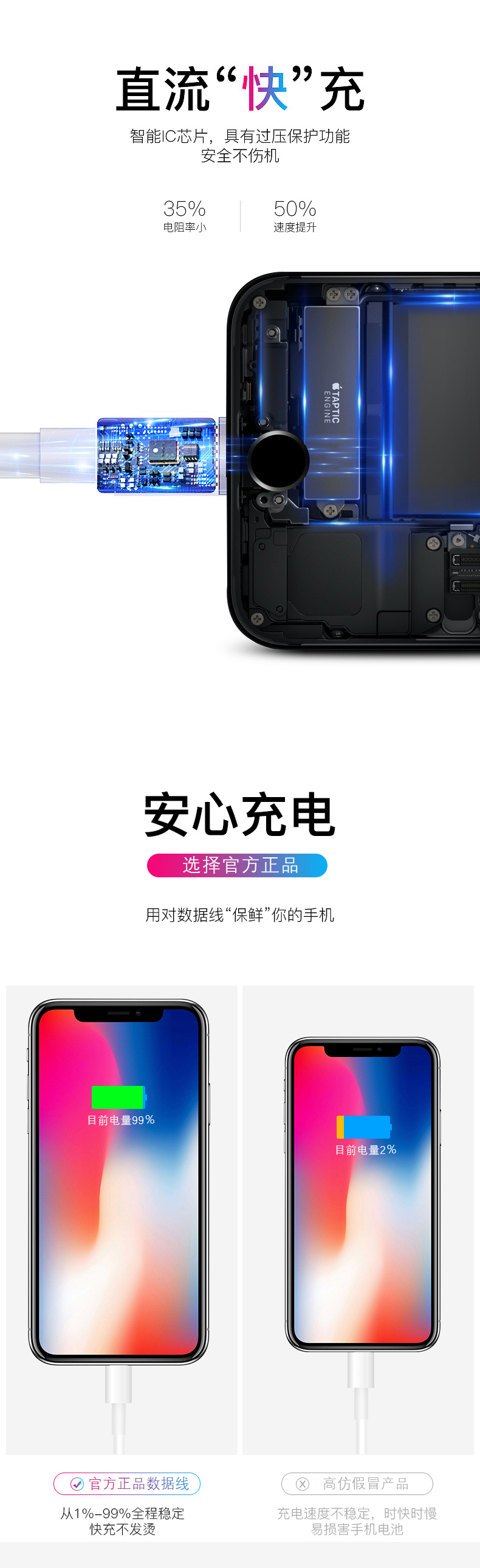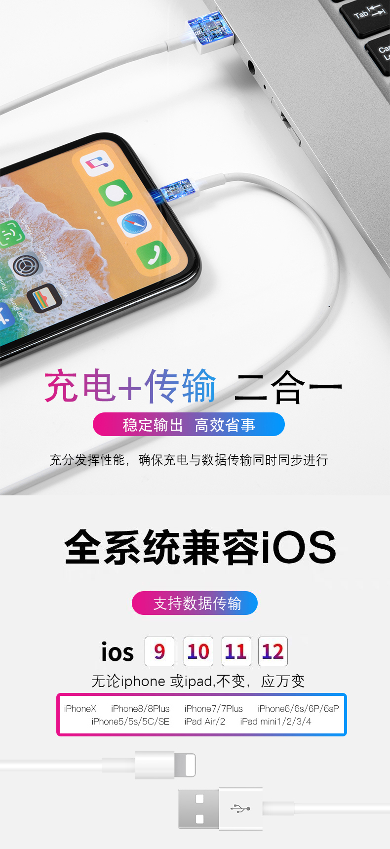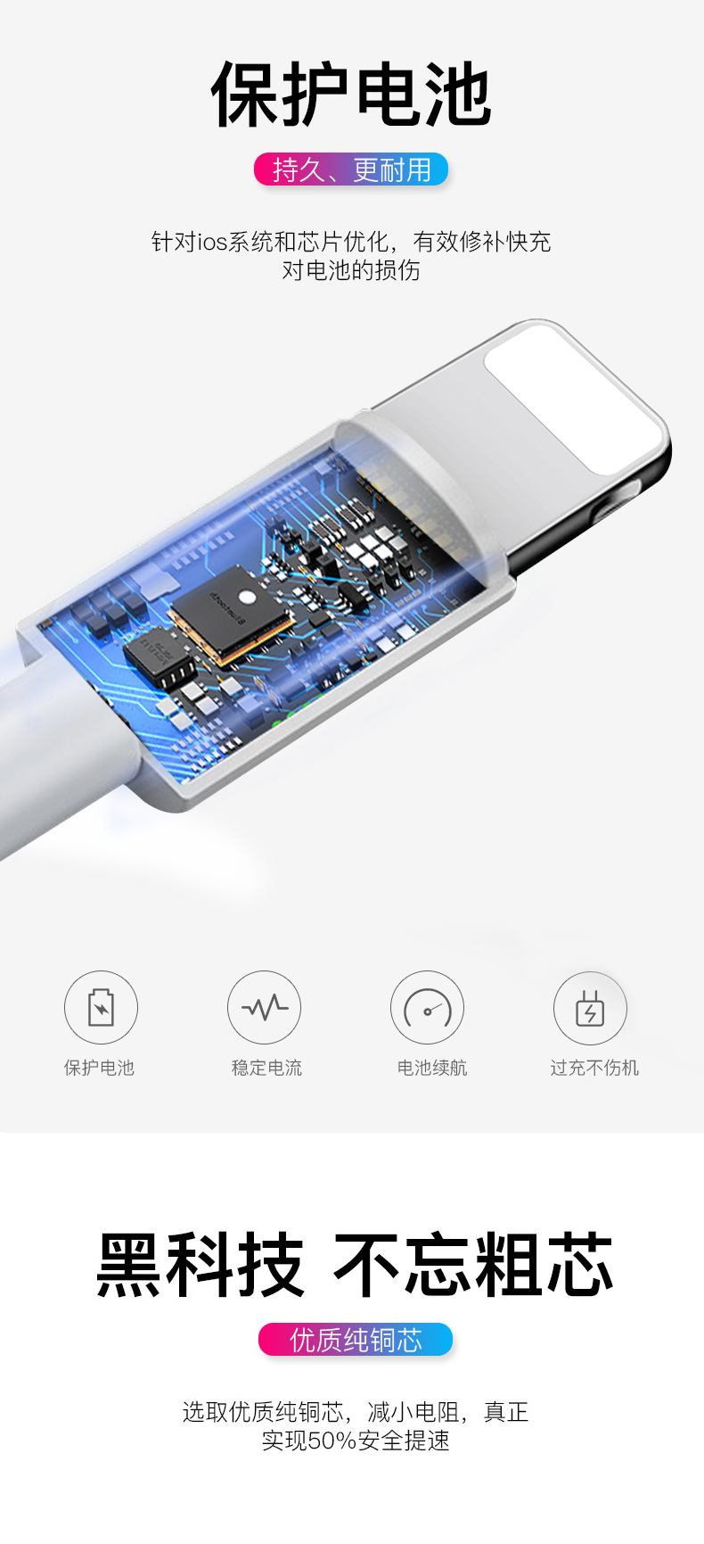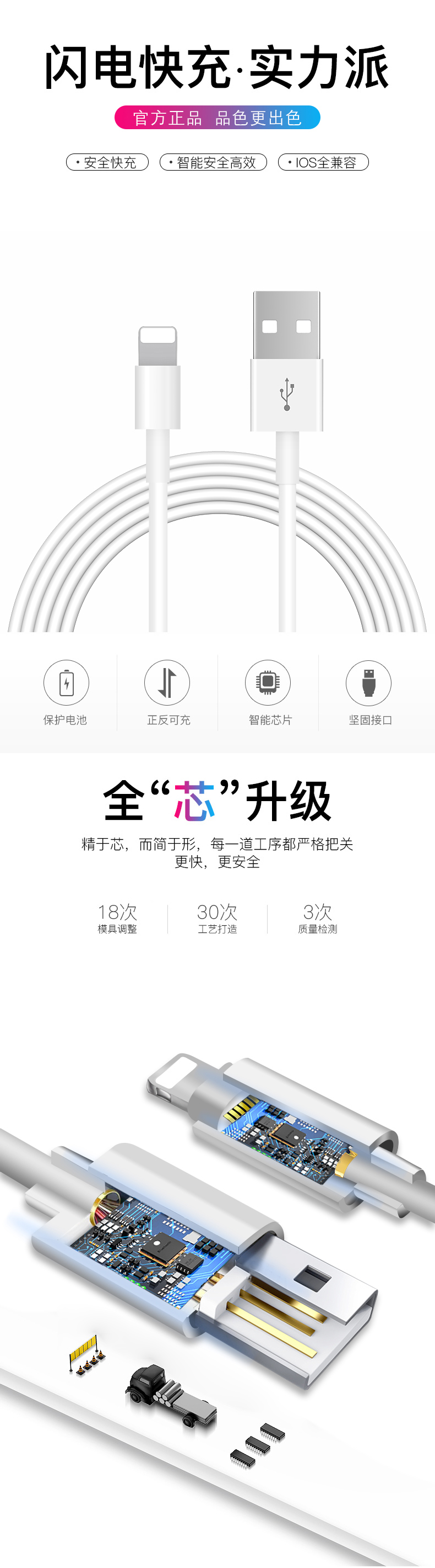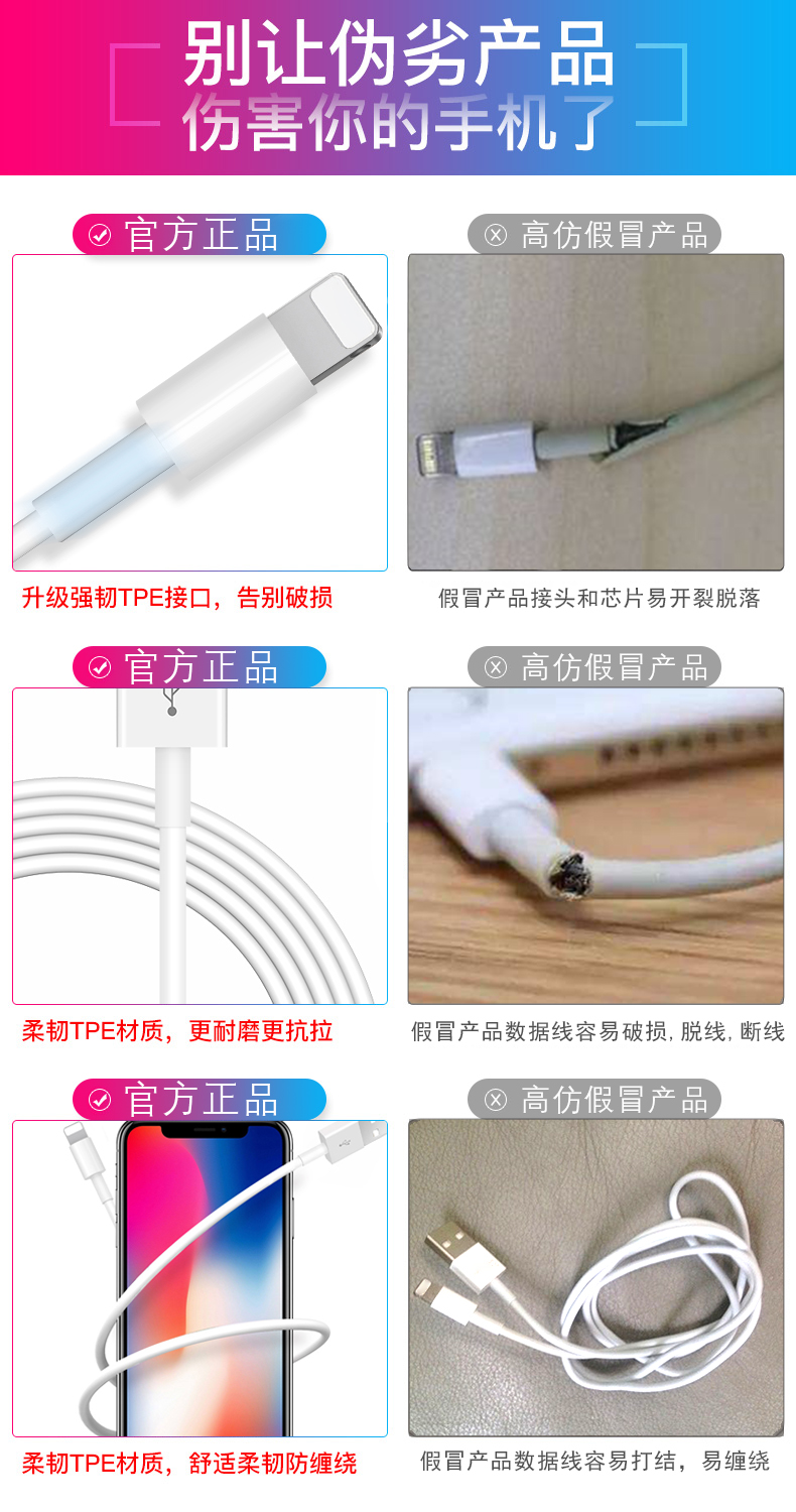【原装正品】符合3C质量认证标准!苹果全系列数据线,强韧TPE接口,告别破损,更耐磨更抗拉。充电+传输2合1,闪电快充。智能,稳定,不发烫!针对ios系统和芯片优化,修补对电池的损伤!【赠运费险】