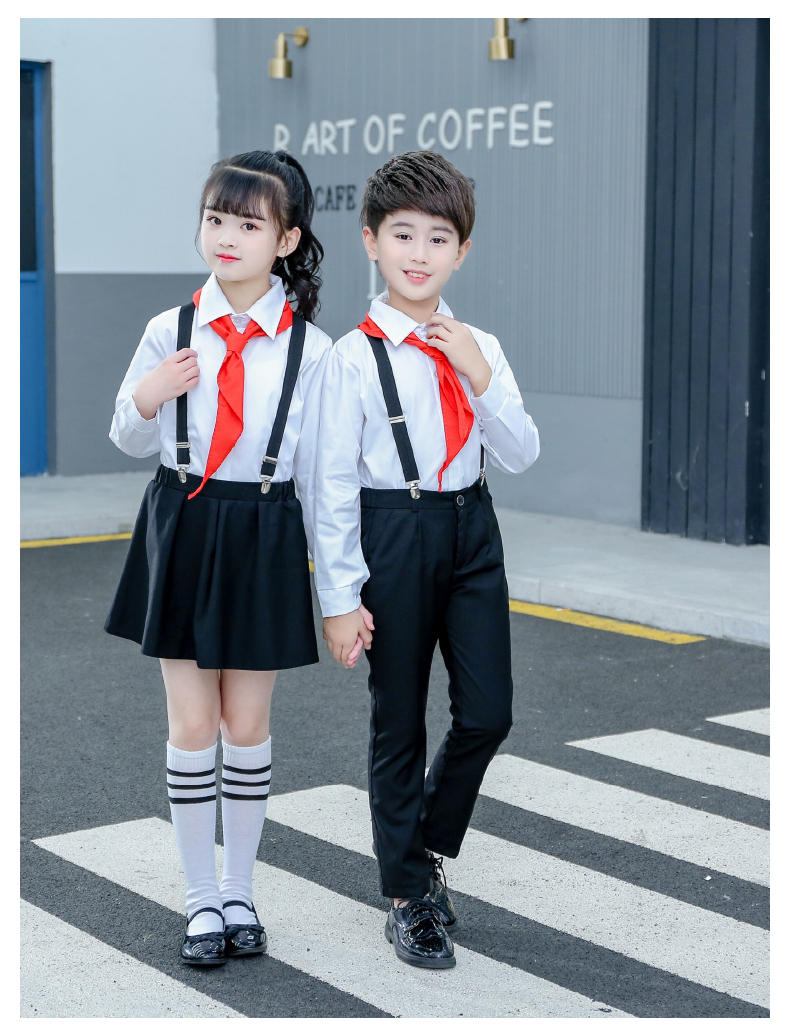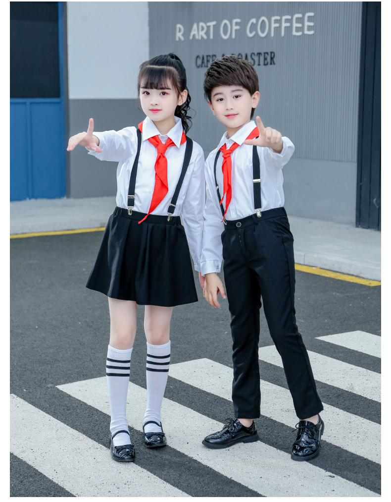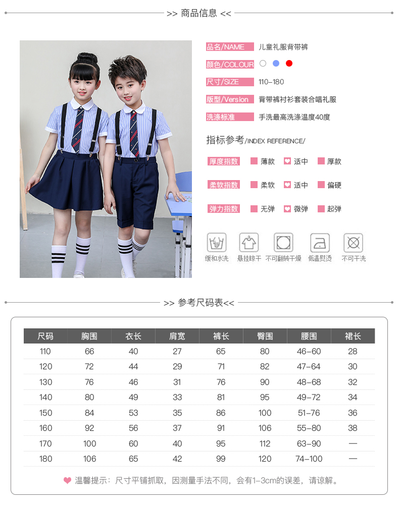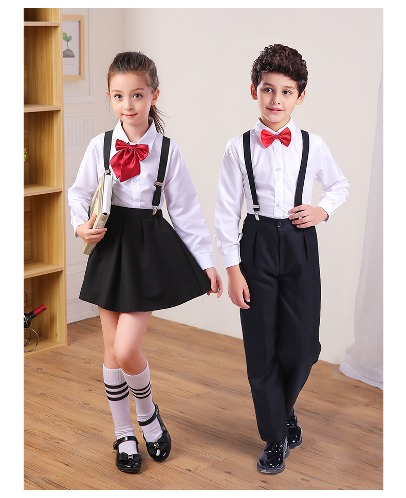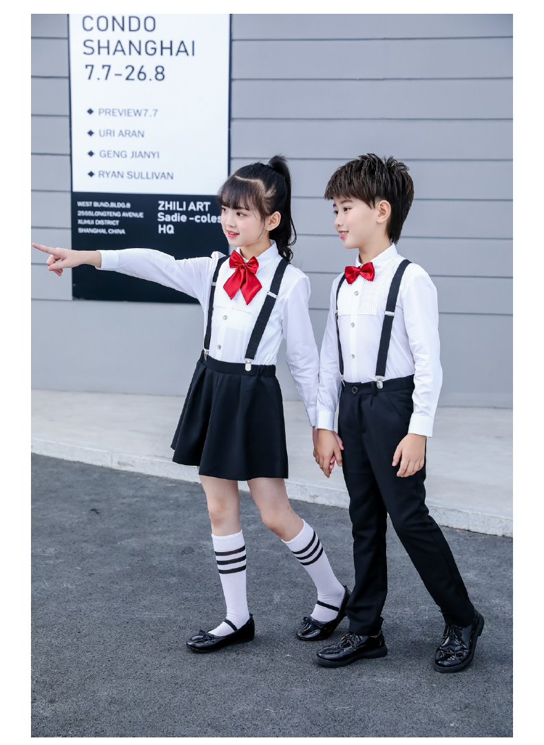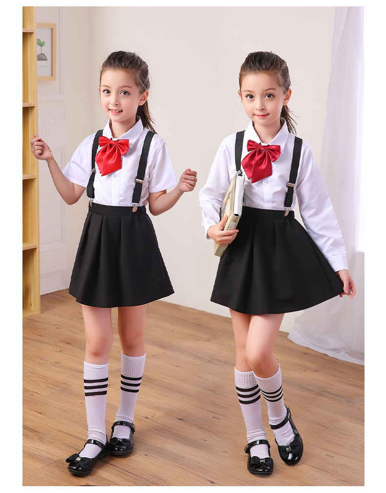 累积销量10W+好评1.2W+演出实力有保证!精选优质面料,设计新颖,款式经典,搭配时尚领结,凸显高贵大方,而且穿着舒适,不管是当做演出服还是校服都可以,大中小款,长短裤都有。