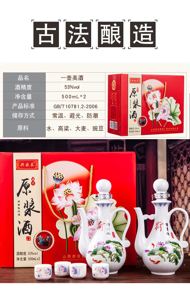 荷花白酒整箱2瓶装53度清香型高粱酒一壶老酒礼盒装纯粮食酒送礼