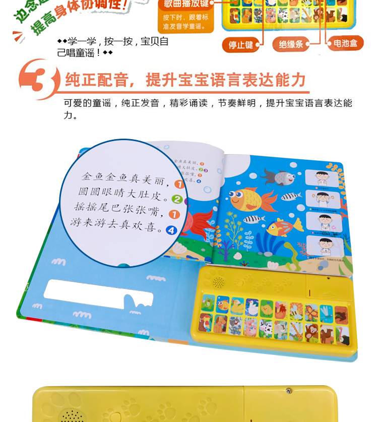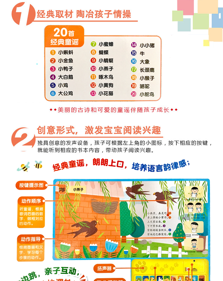 【乐乐趣】【发声书】送给孩子暑假的礼物!20首金典童谣,朗朗上口,纯正配音,提升宝宝语言表达能力,认知事物和生字,精美图片,激发宝宝阅读兴趣,速抢!【赠运费险】