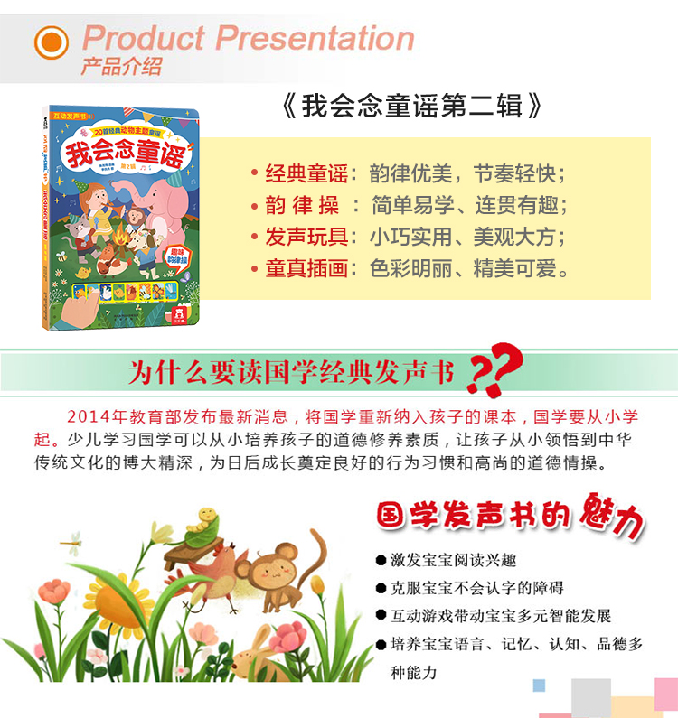 我会念童谣 第2辑幼儿早教书认知启蒙有声读物 乐乐趣经典发声书音乐书宝宝点读发声书0-3-6岁婴儿益智玩具亲子互动书籍经典儿歌