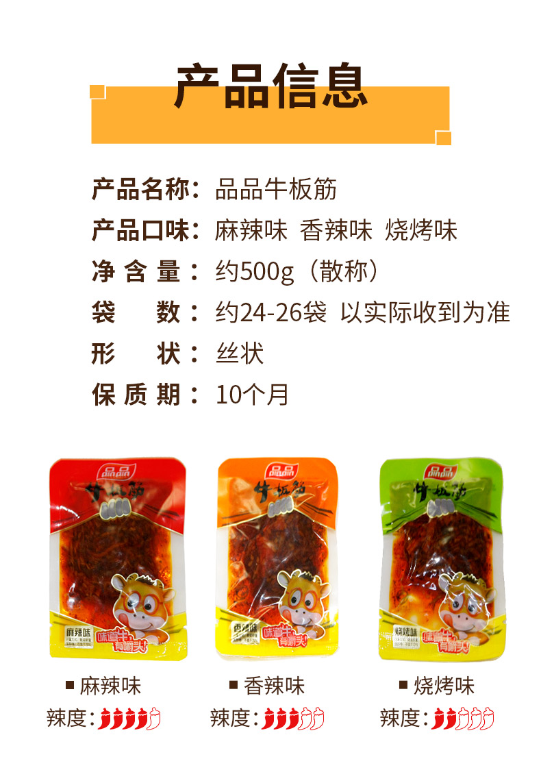 品品牛板筋500g麻辣牛肉小吃小包装多口味散装办公室辣味零食1斤