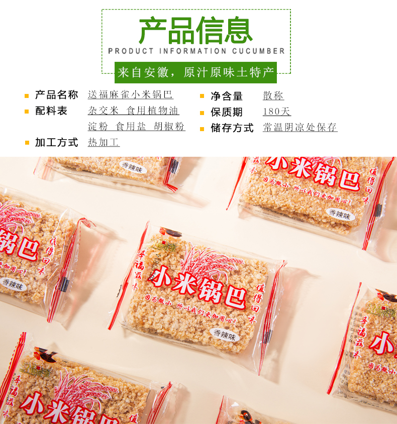 送福麻雀小米锅巴手工安徽特产办公室零食800g整箱小包装休闲食品