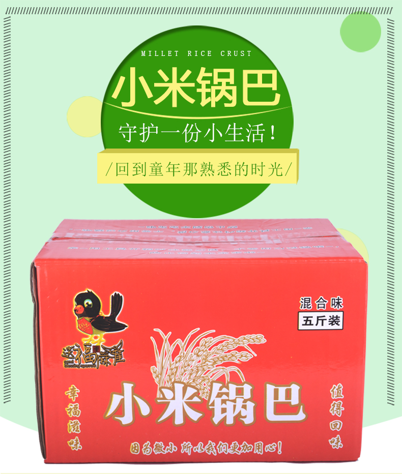 【800g整箱】【吃货必撸】送福麻雀小米锅巴。超级好吃又营养的小米锅巴,辅以健康植香脆酥爽!休闲办公必备零食,小孩大人都爱吃!独立包装,随身一小包补充能量!