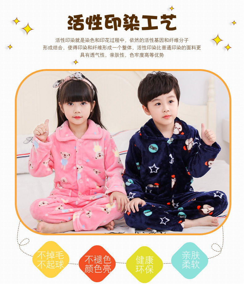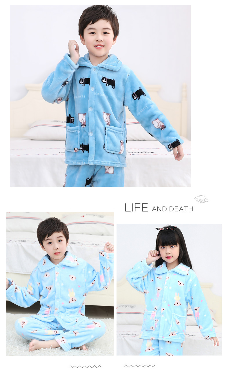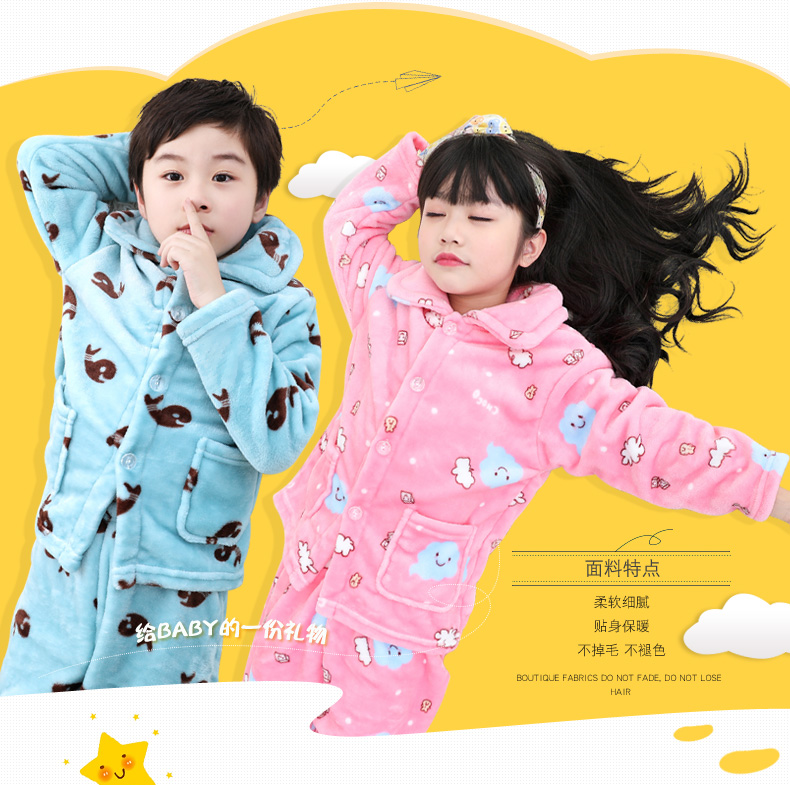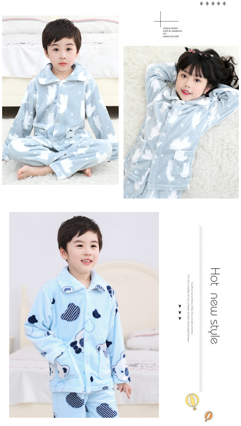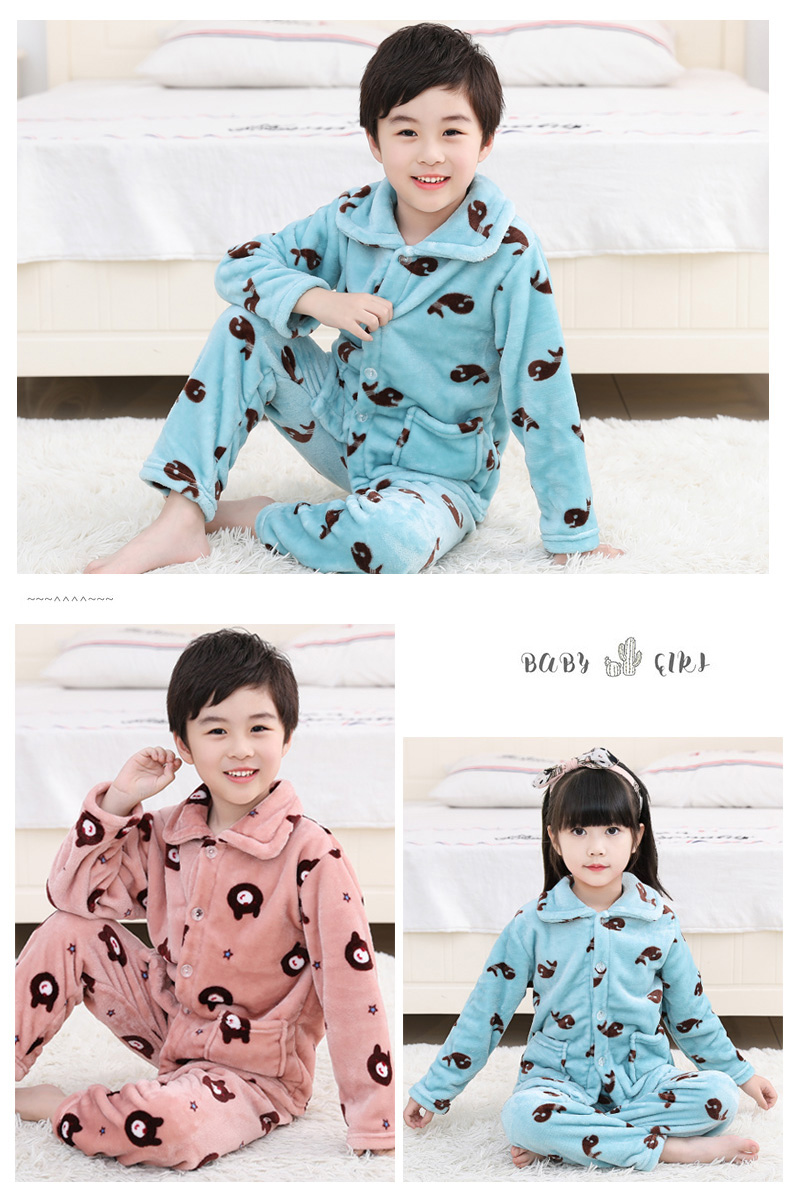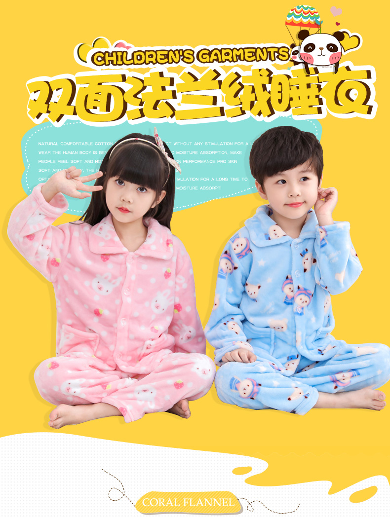 秋冬儿童法兰绒睡衣套装女孩男童男孩小孩宝宝珊瑚绒女童装家居服