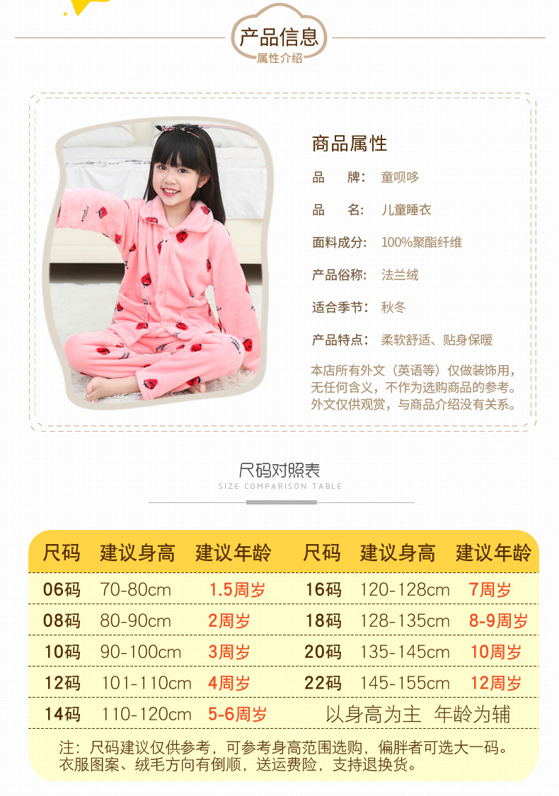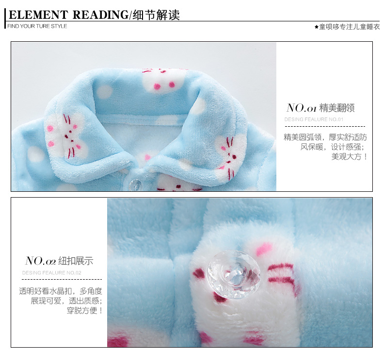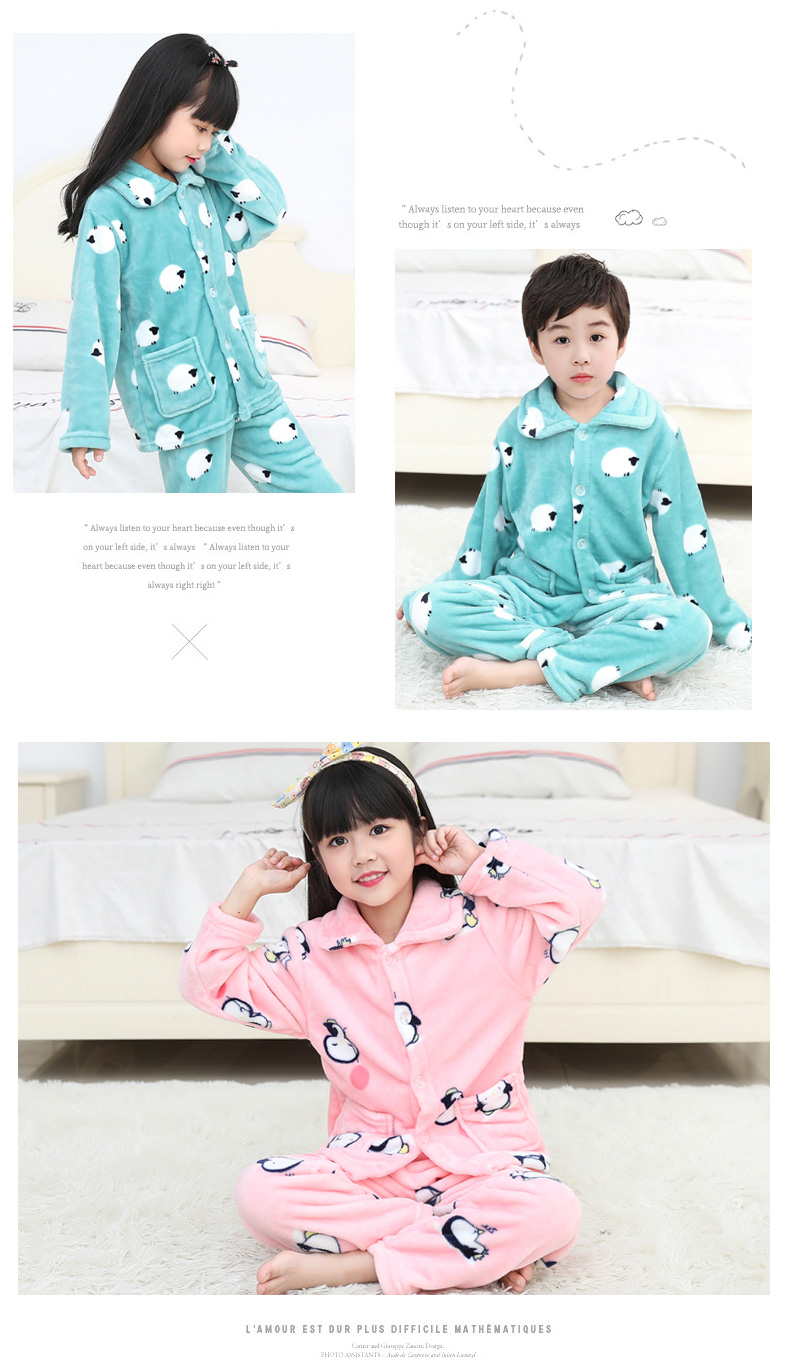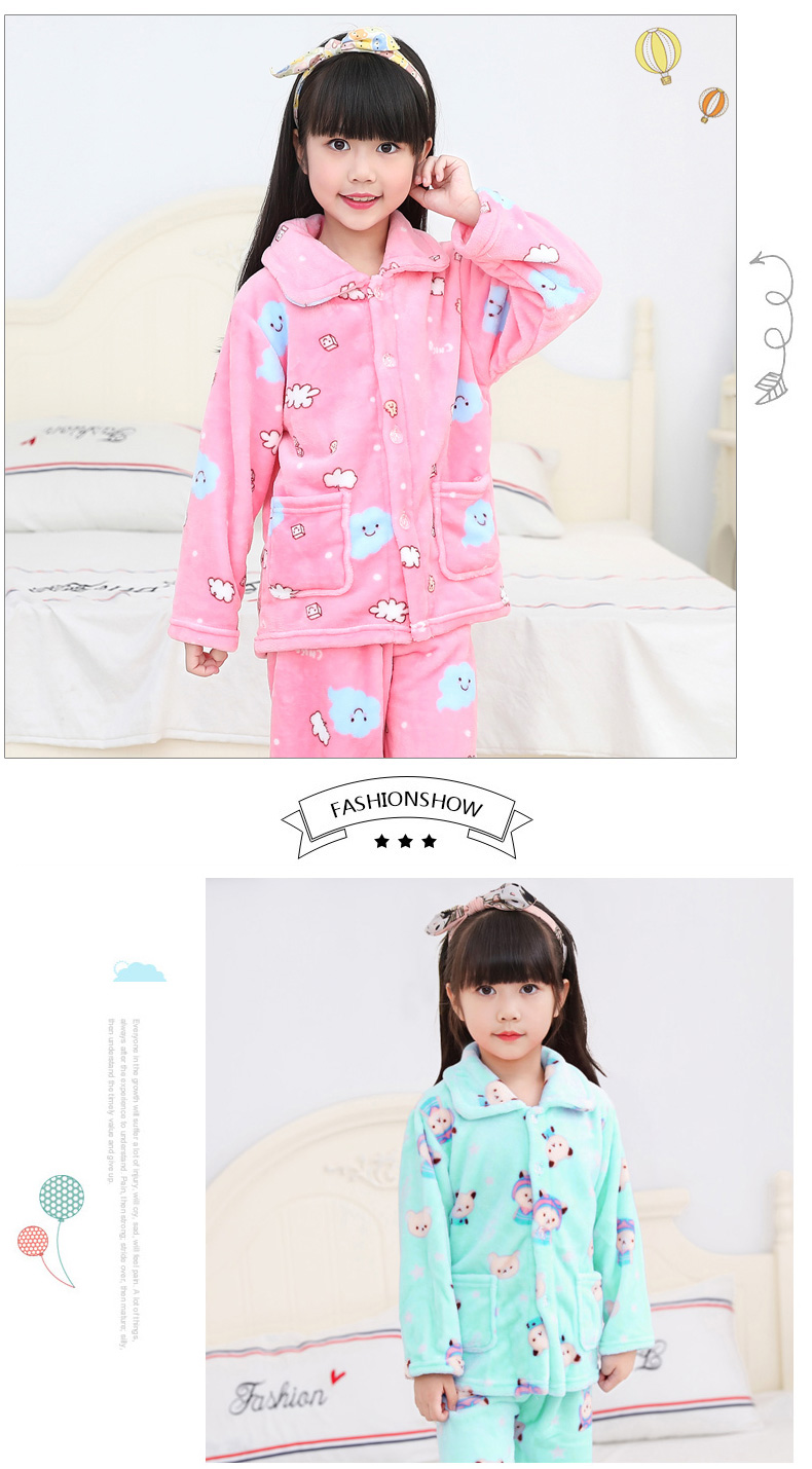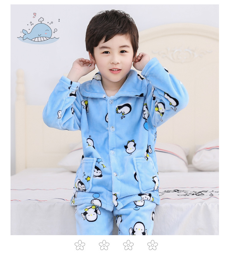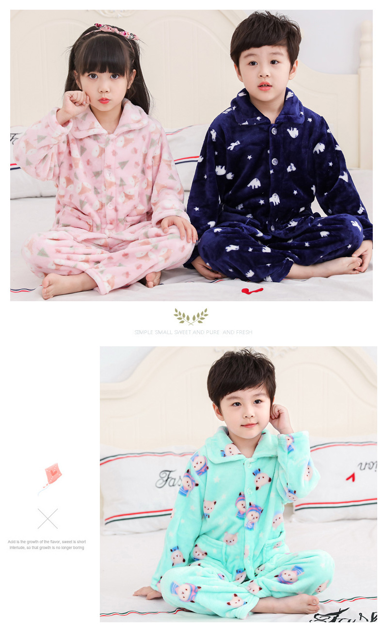 秋冬儿童法兰绒睡衣套装女孩男童男孩小孩宝宝珊瑚绒女童装家居服