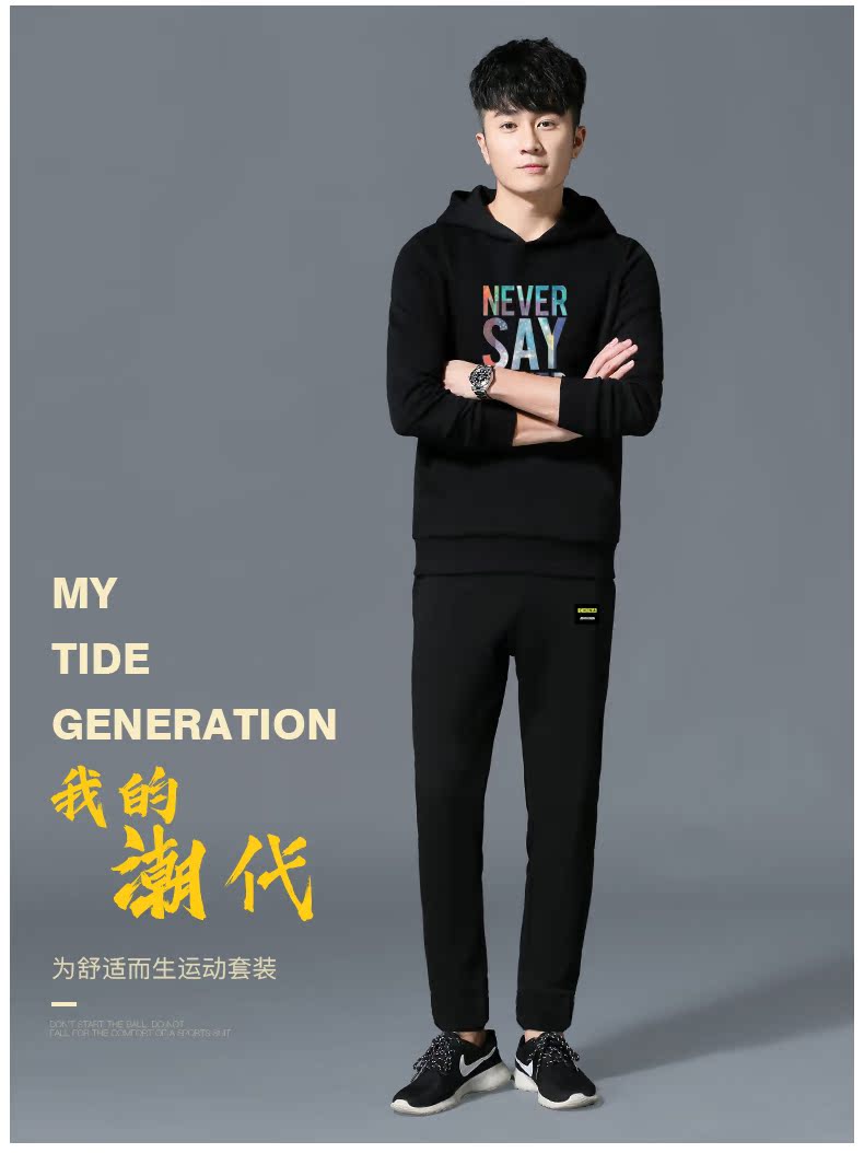 卫衣男秋冬款2019年新款加绒加厚潮男士休闲运动套装男装秋季外套