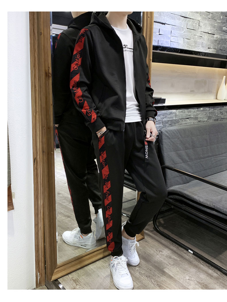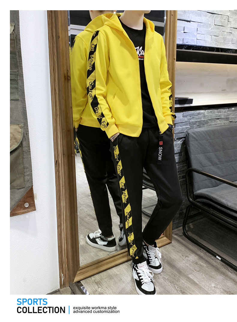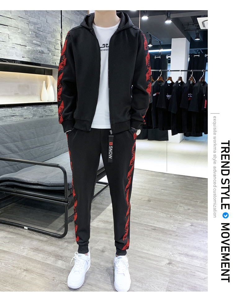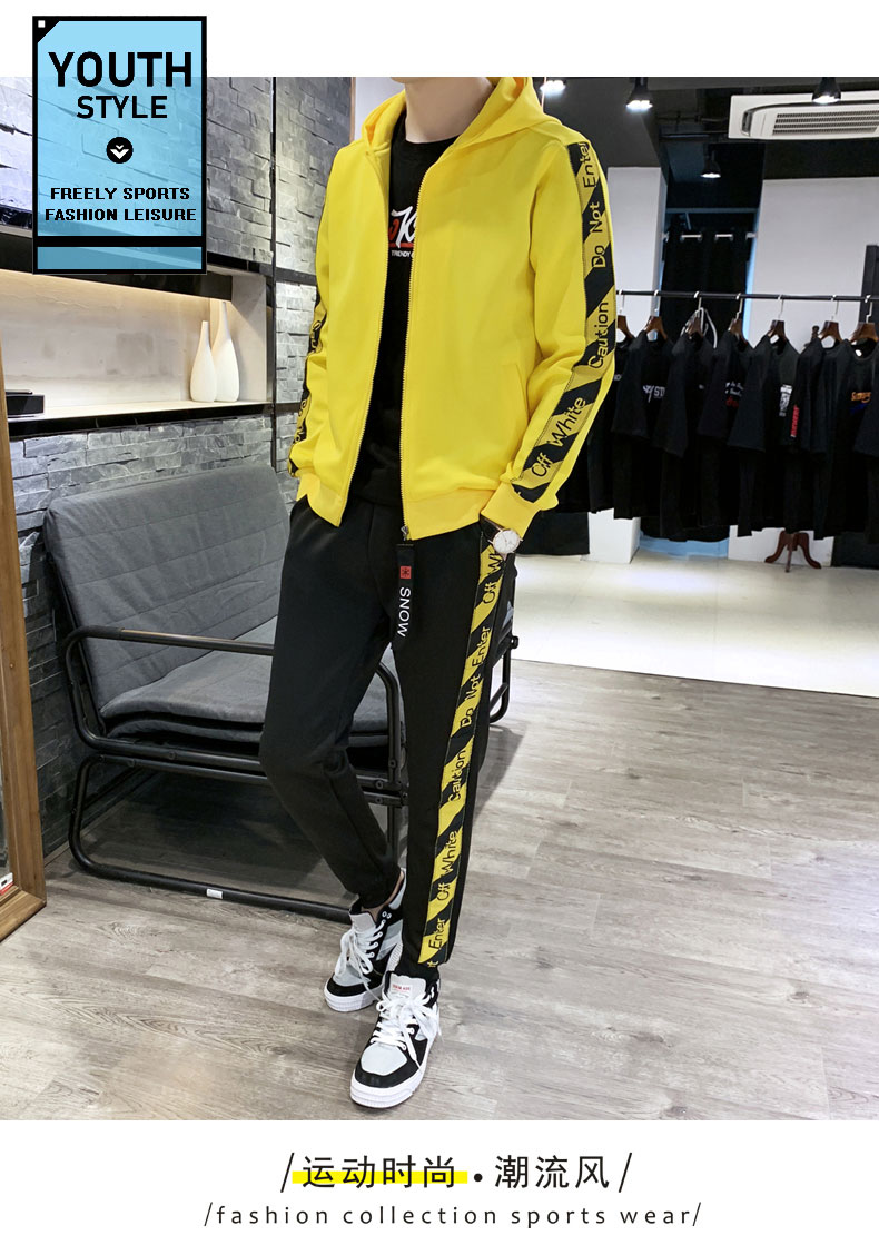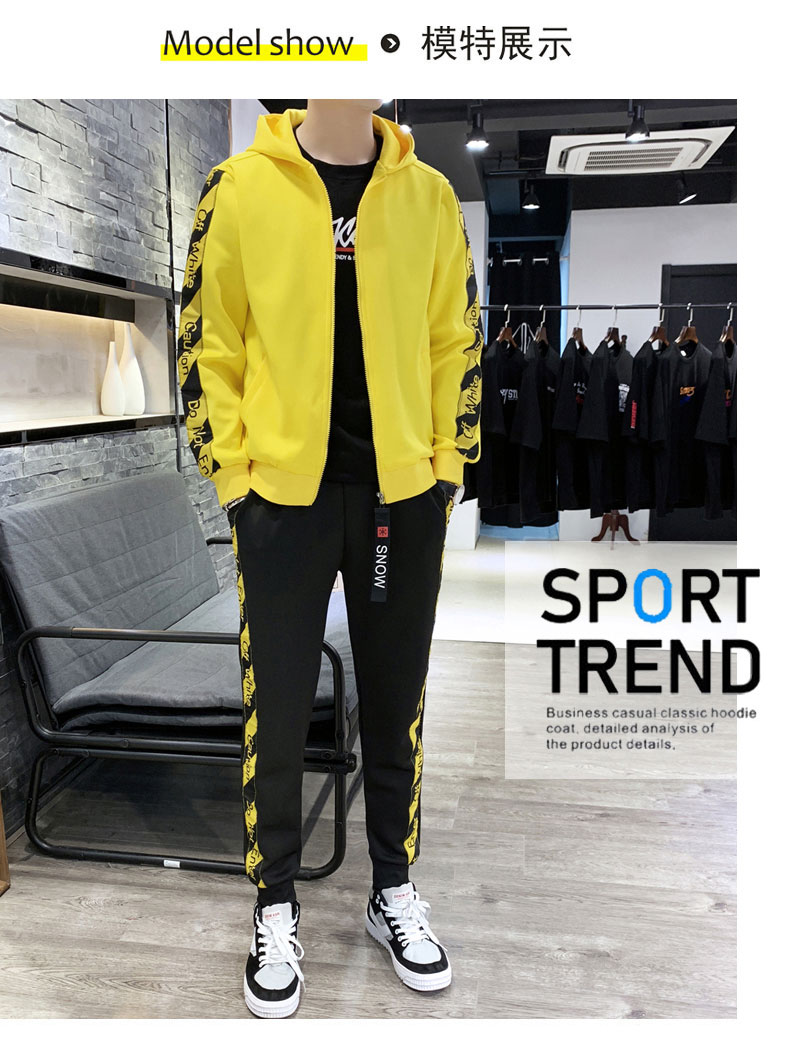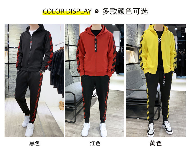2019秋季男士新款休闲装套装男青年韩版潮流圆领卫衣T恤运动套装