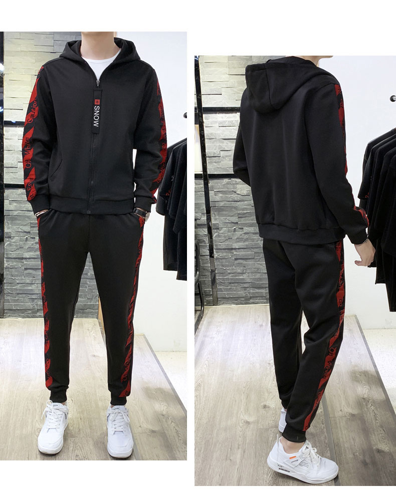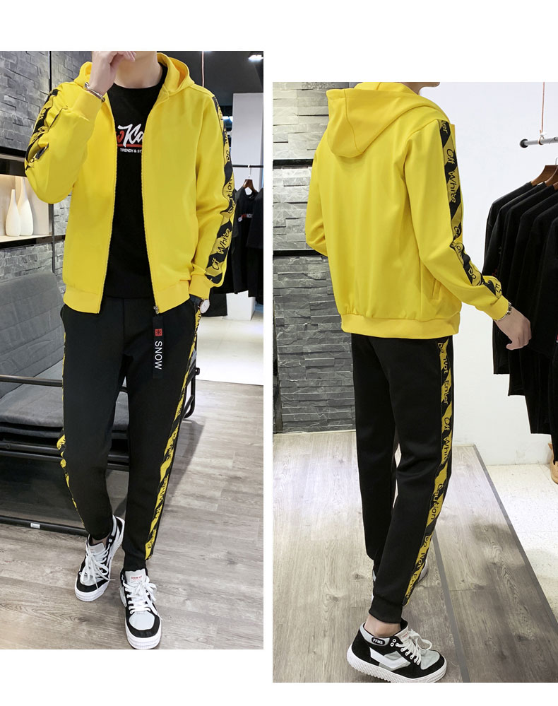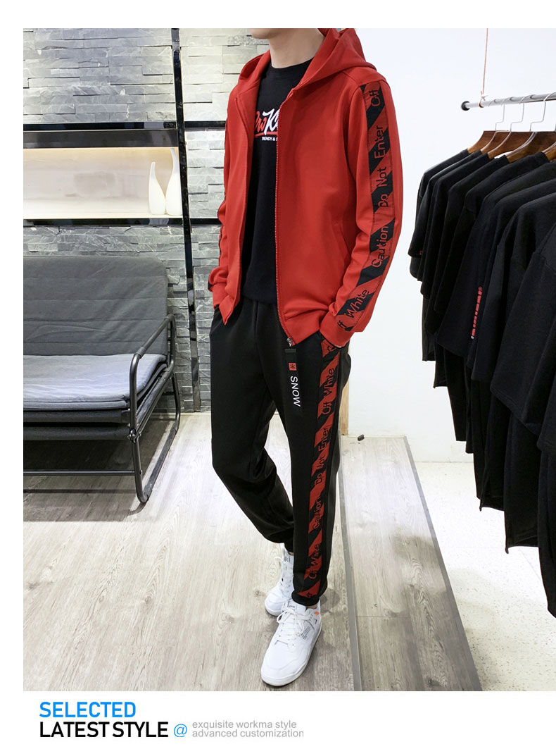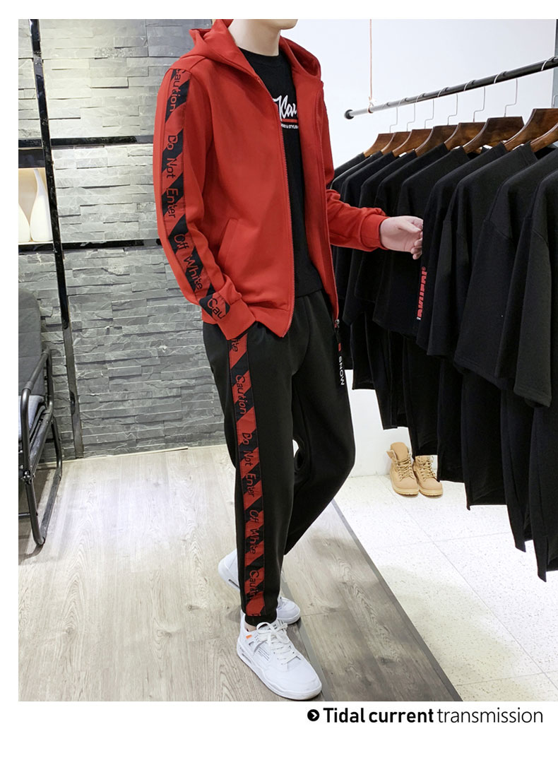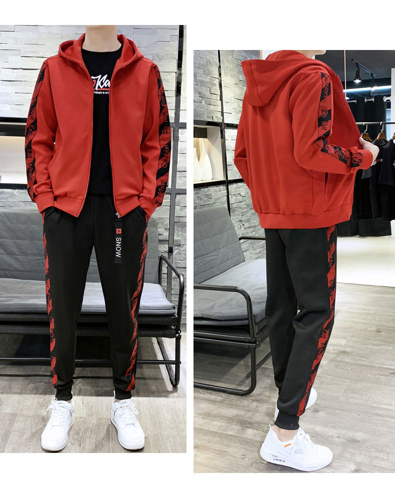 2019秋季男士新款休闲装套装男青年韩版潮流圆领卫衣T恤运动套装