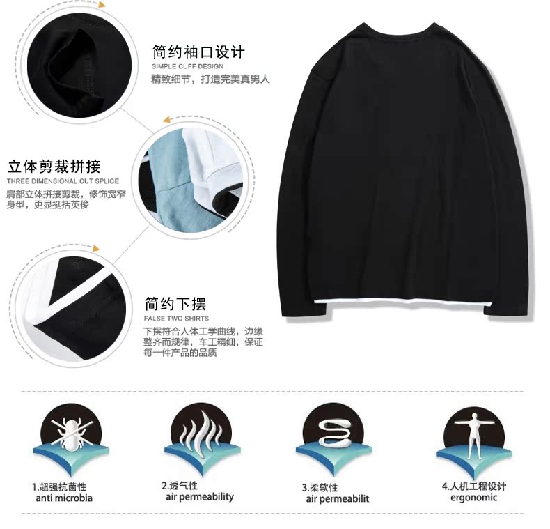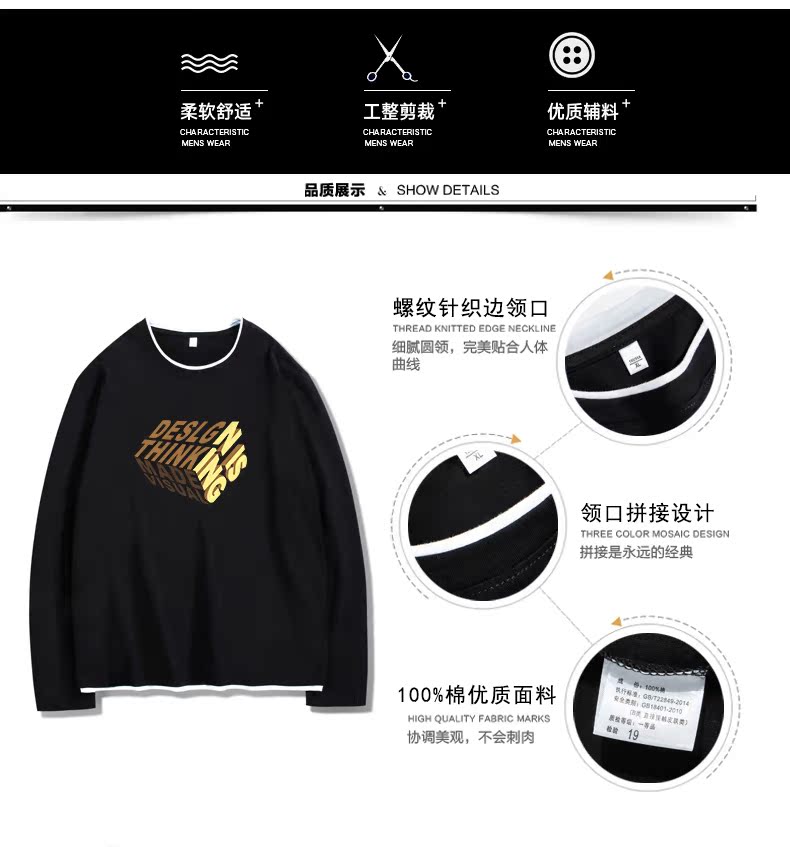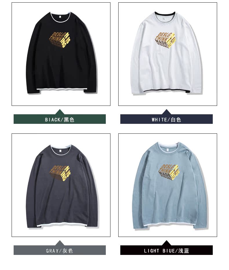 春秋季打底衫男长袖t恤 纯棉潮流卫衣修身潮牌上衣服2019秋装新款