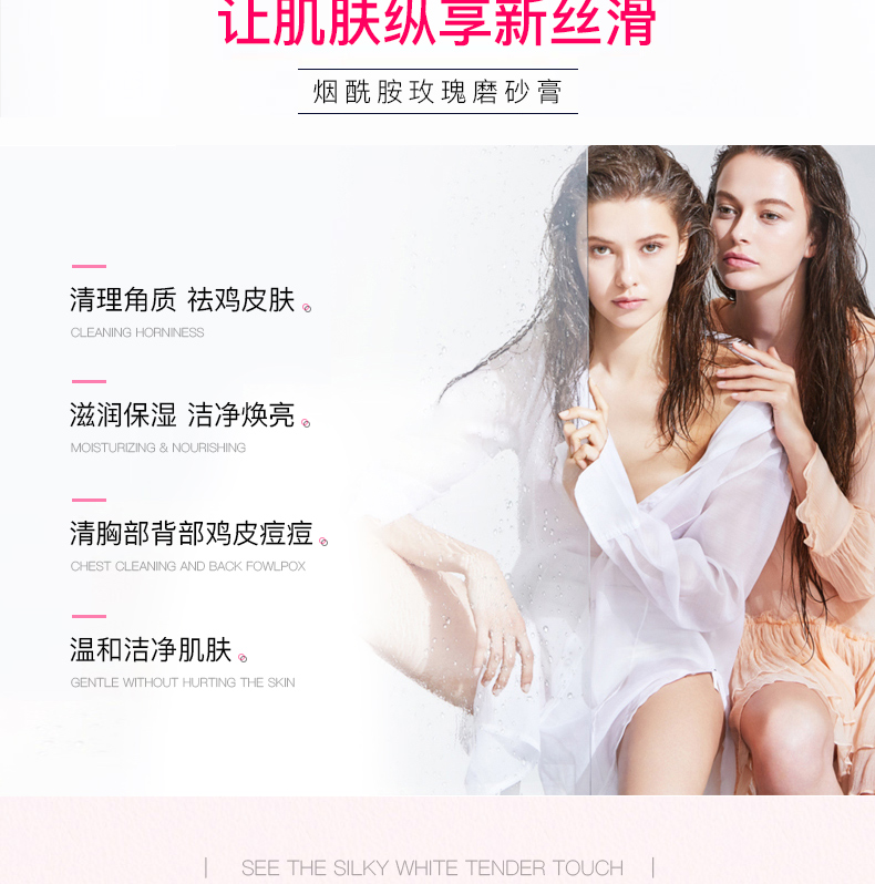 【买一送一】慕漾烟酰胺玫瑰身体磨砂膏,天然植物清洁角质,去角质去鸡皮肤,滋养嫩滑,温和磨砂,不磨损肌肤,提亮全身光泽,轻松还你嫩白肌肤~