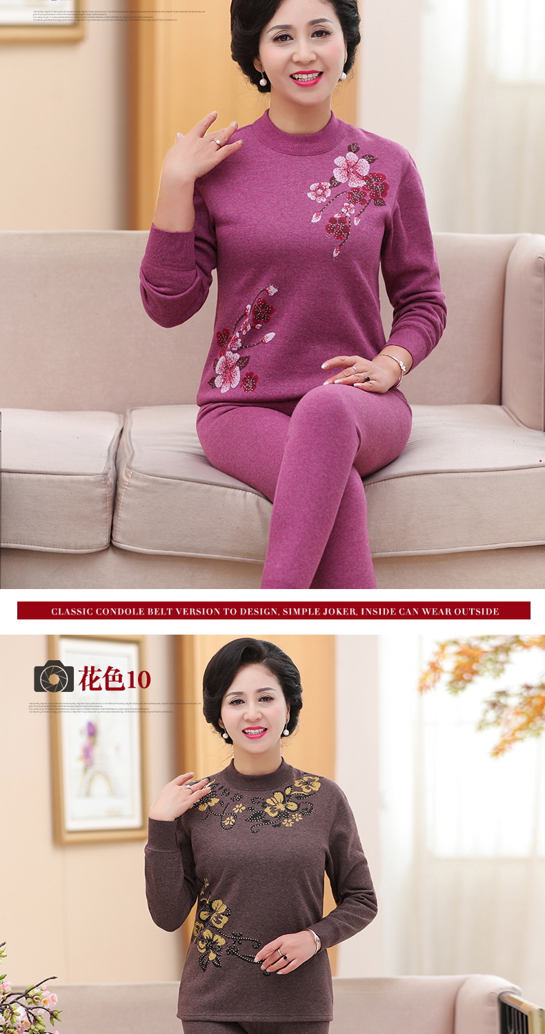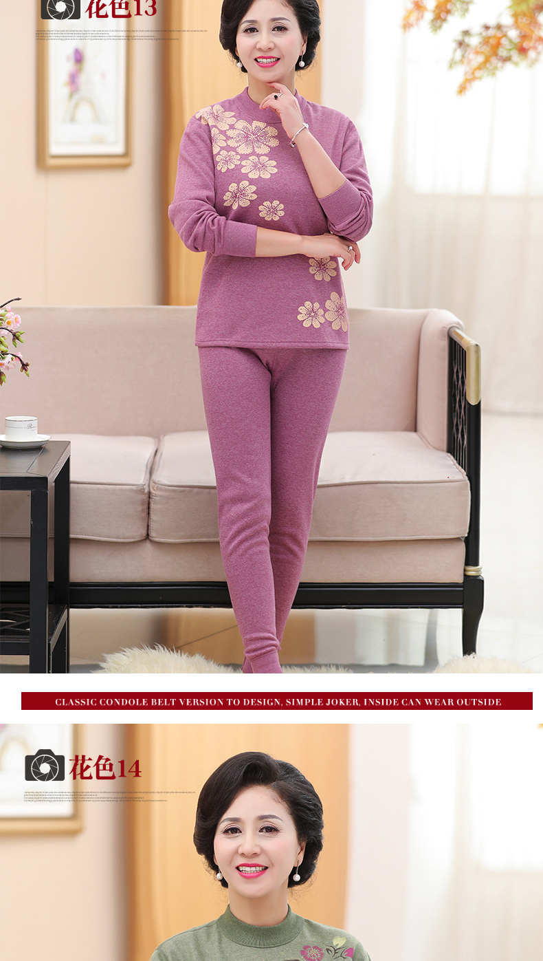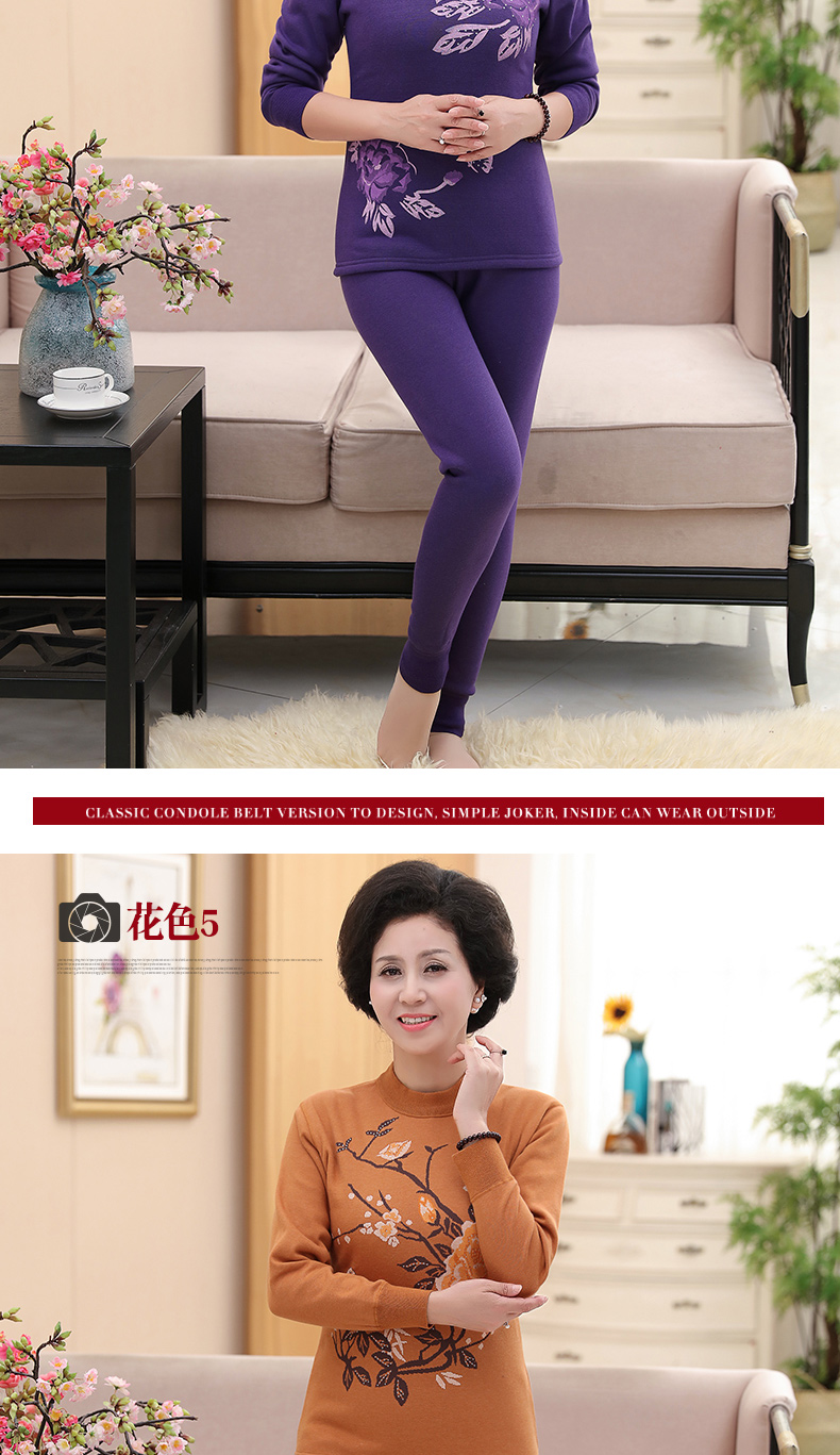 俞兆林女士加绒加厚老人保暖内衣套装中老年纯棉秋衣秋裤大码妈妈