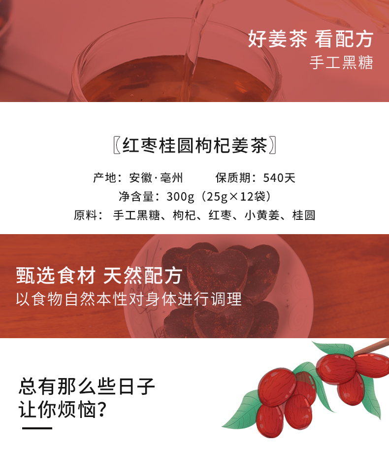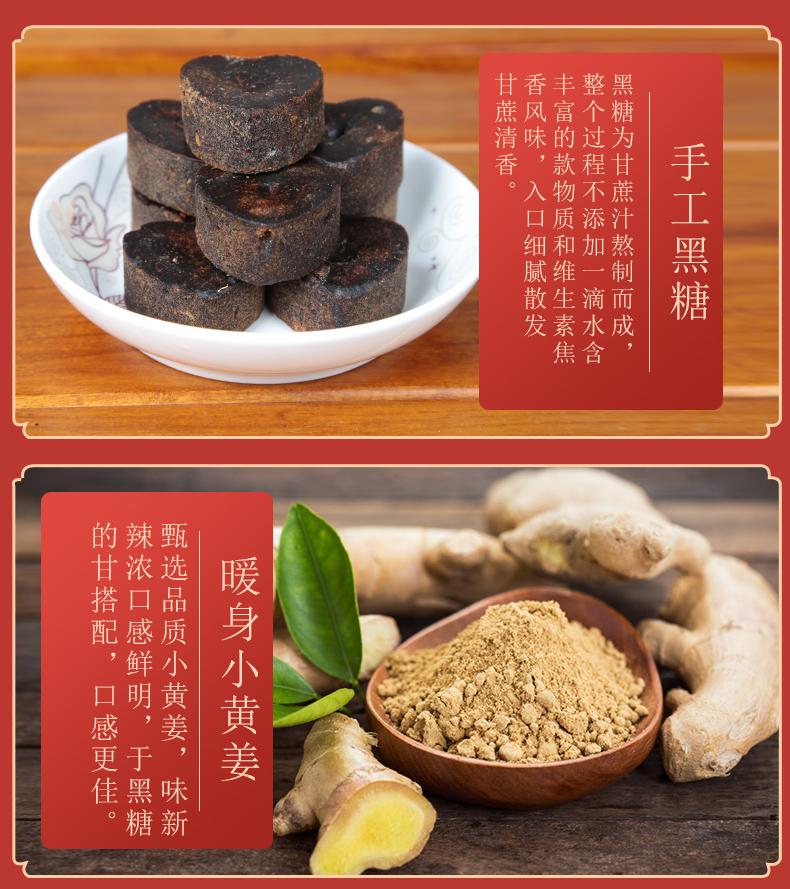 红糖姜茶大姨妈黑糖块调理姜枣茶宫寒生姜红枣枸杞姜汁小袋装体寒