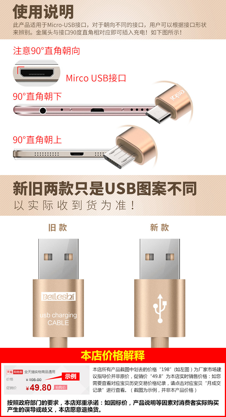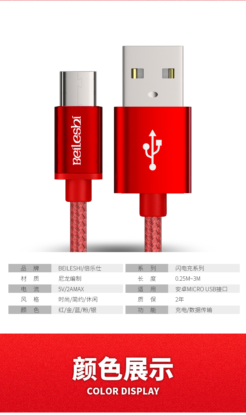 倍乐仕适用360数据线F4S N4A N4S N5S F5 N6Pro手机的C6快充充电器线VIZZA手机充电线安卓通用充电器线