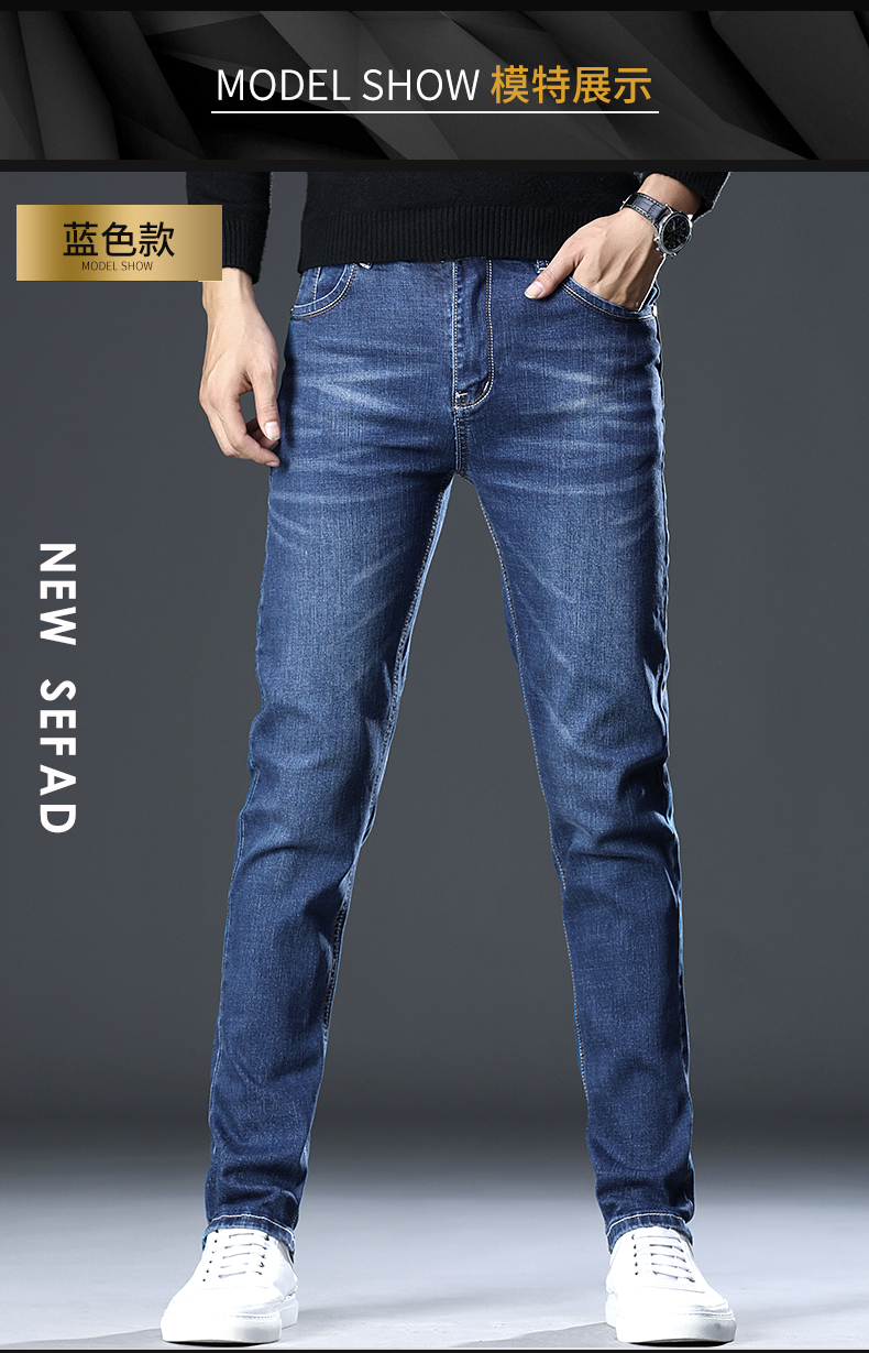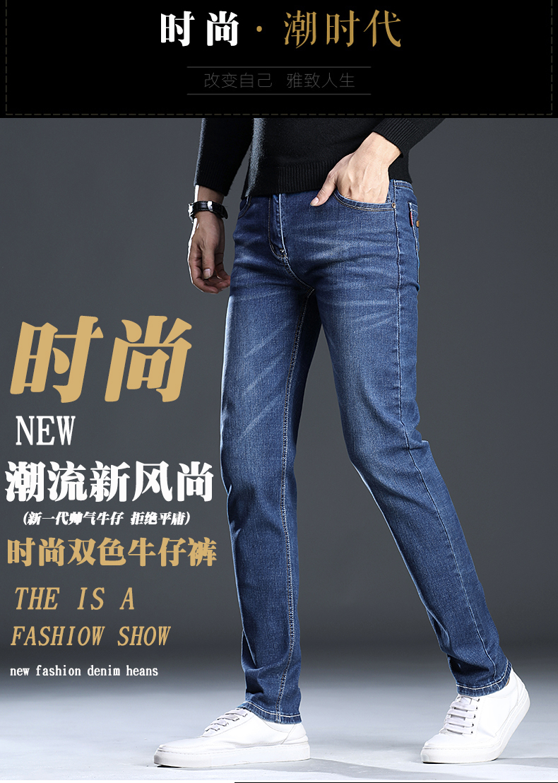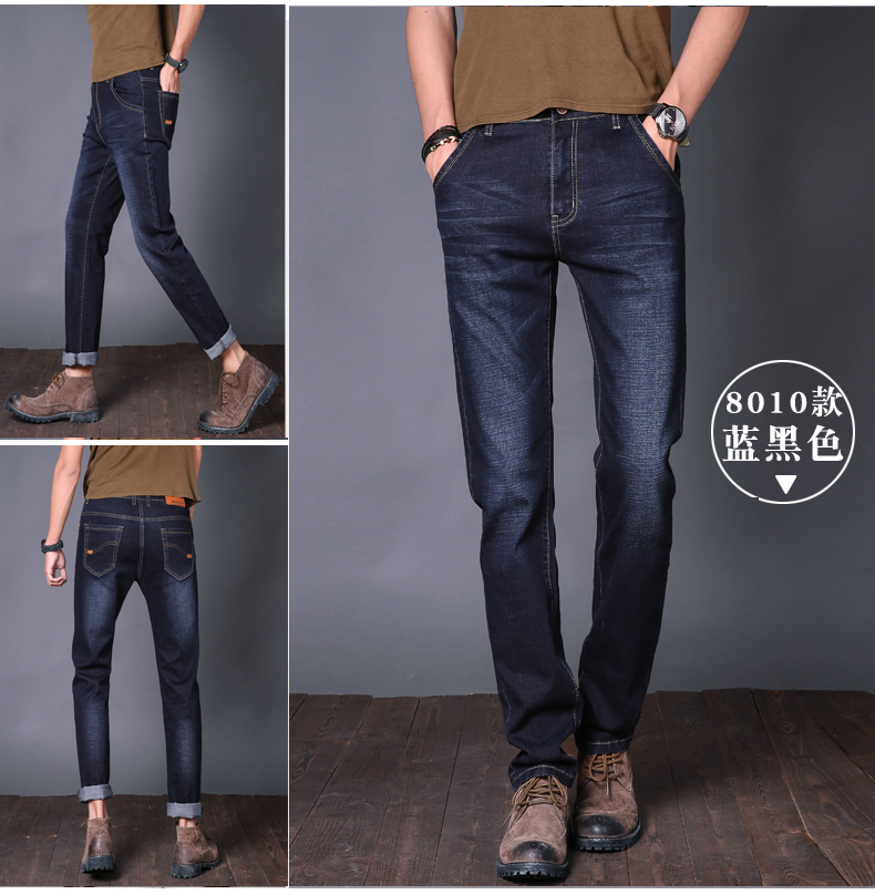 新款秋季男士黑色直筒牛仔裤男修身男式休闲弹力秋冬款宽松牛子裤