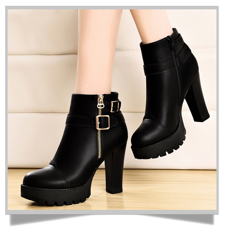 高跟鞋2019新款女鞋子韩版百搭秋冬季加绒棉鞋女粗跟网红女士皮鞋