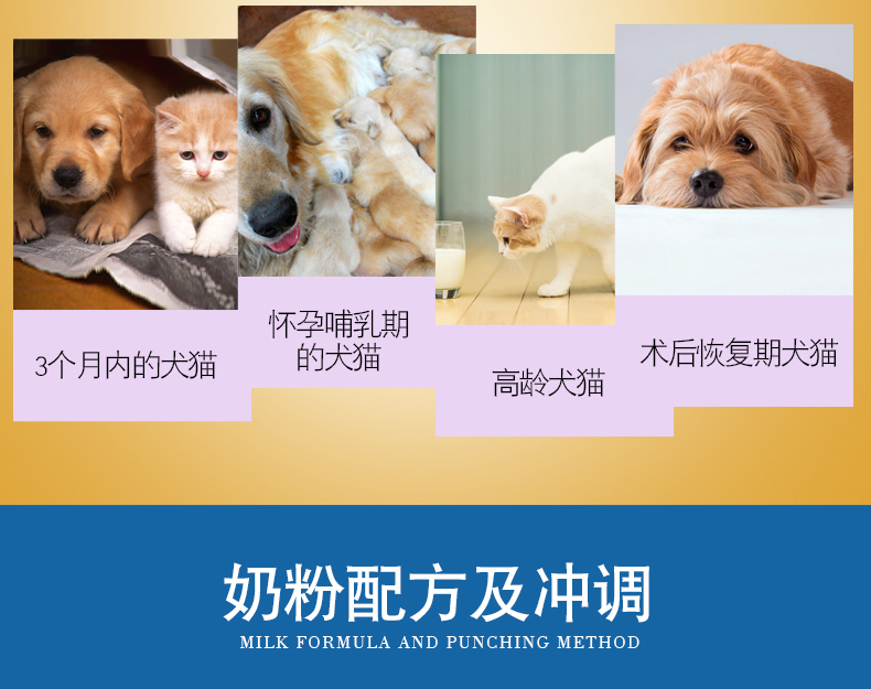 奶粉,溶解度高,细腻不结块,科学配方,健康奶源,猫犬通用,不上火,猫狗不拉稀,贴近母乳,保护肠胃,提高免疫,强壮体质。好营养更健康,爱它就给它好的!