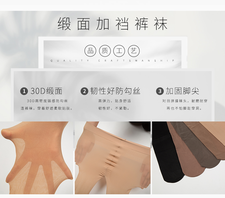 【超值3双装9.8元】第2件半价,30D缎面加档加大,亲肤柔软,吸湿排汗,高弹力韧性好,脚尖加固,性感T裆,无约束感,美腿塑形,多色可选超百搭,女神必备裤袜~