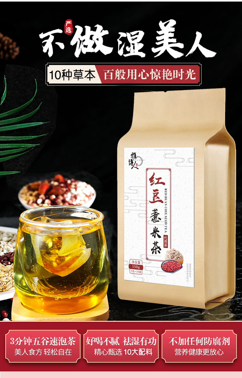 【超值3袋装】红豆薏米茶薏仁茶祛湿茶,养生必备,独立小包装装,精选多种食材,真材实料看得见,色泽金黄,无添加,口感清香回甘,每天一杯,喝出健康好气色,无湿一身轻