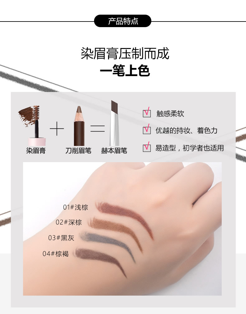 【第二只0元】拍两件!烙色眉笔防水防汗,不脱色自然持久,一字眉初学者晕染眉膏雾眉粉,立体切面笔芯,笔触顺滑流畅,经典气质,多色可选。【赠运费险】
