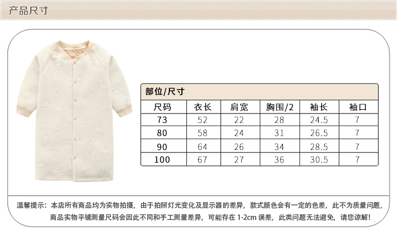 天猫品质,采用天然纯棉,透气舒适,宽松自如,穿脱便捷,柔软的包边领口,不扎脖子,松紧袖口,防风防勒,给宝宝好的睡眠~【赠运费险】