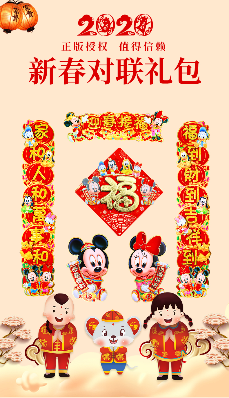 2020鼠年春节对联过年春联乔迁新居入宅新年装饰搬家福字生肖门贴