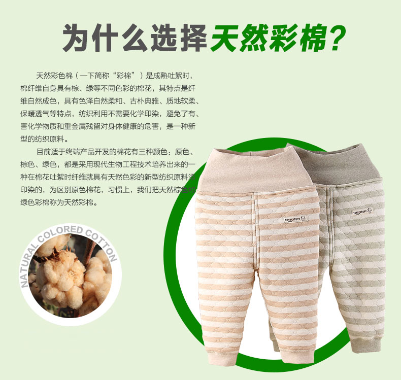 采用天然彩棉,质地柔软,无荧光剂,健康环保,透气舒适,保暖透气,高腰开裆护肚有保障,穿着舒适不勒腰,您宝宝值得拥有!【赠运费险】