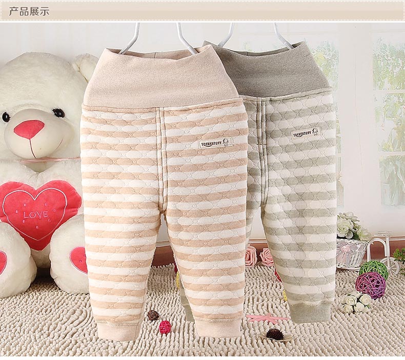 婴儿高腰裤夹棉加厚儿童保暖裤秋冬装新生儿男女宝宝彩棉护肚裤