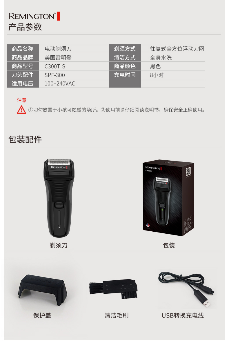 雷明登电动剃须刀男士往复式充电式全身水洗正品刮胡刀车载胡须刀