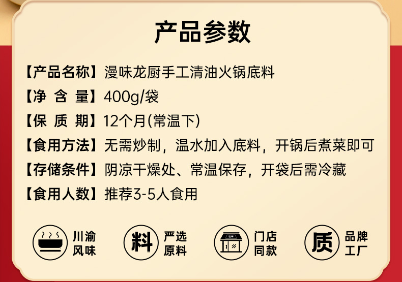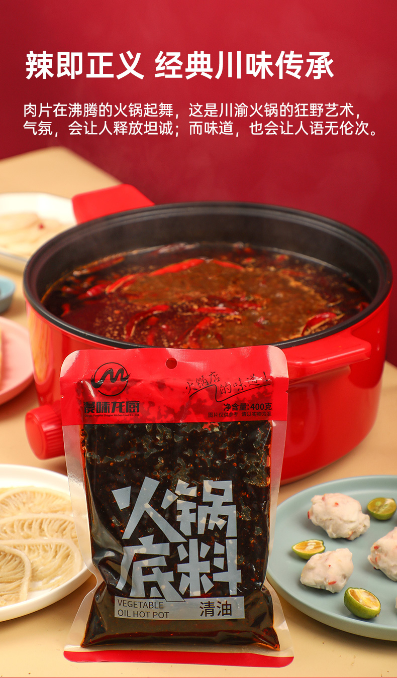 漫味龙厨手工清油火锅底料冒菜麻辣烫调料四川特产火锅底料