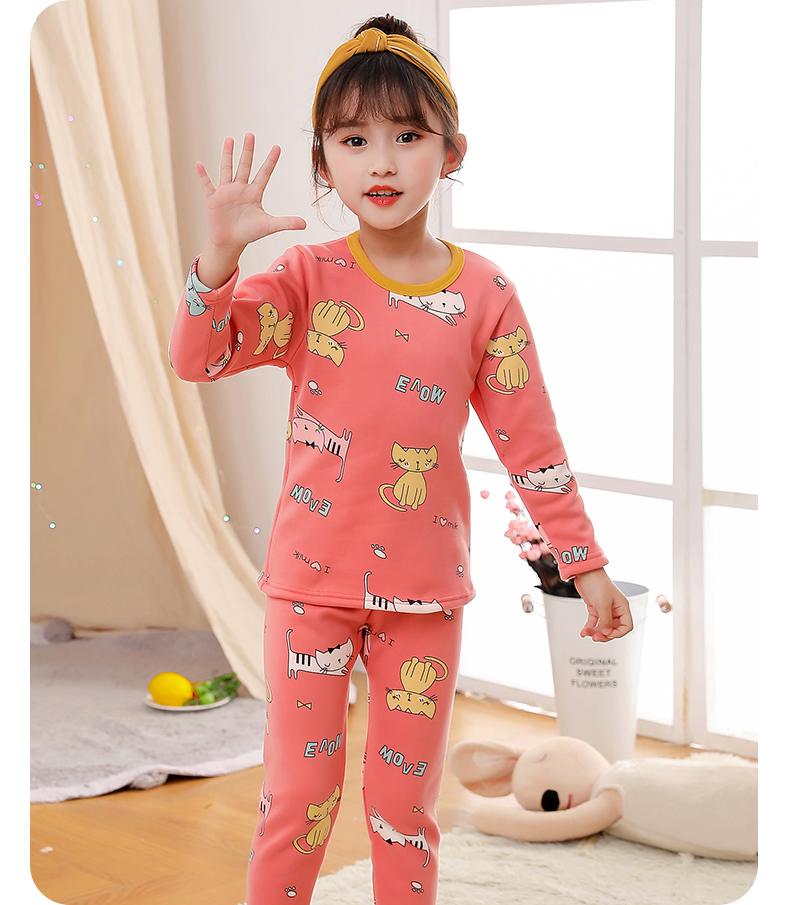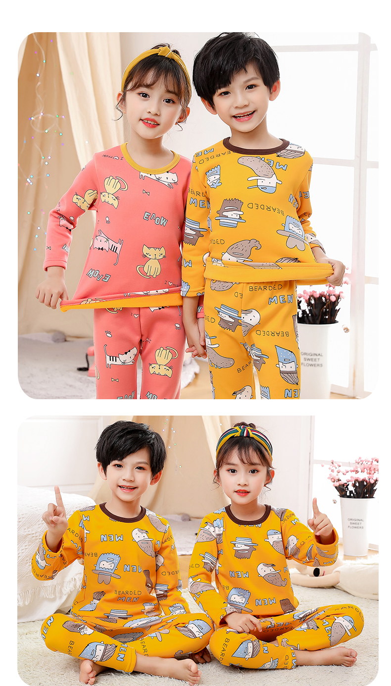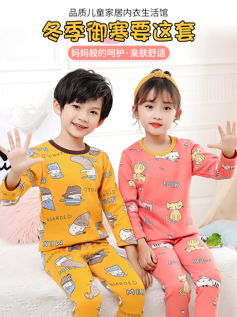 儿童保暖内衣套装加绒加厚男童装女童秋衣秋裤中大童宝宝冬季睡衣