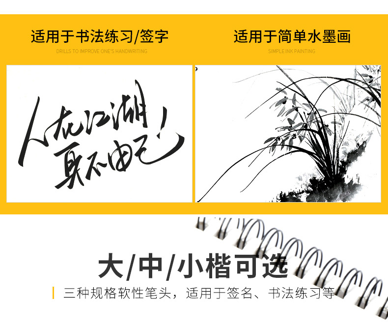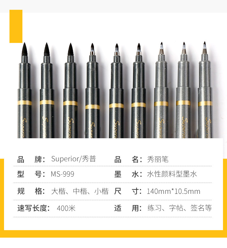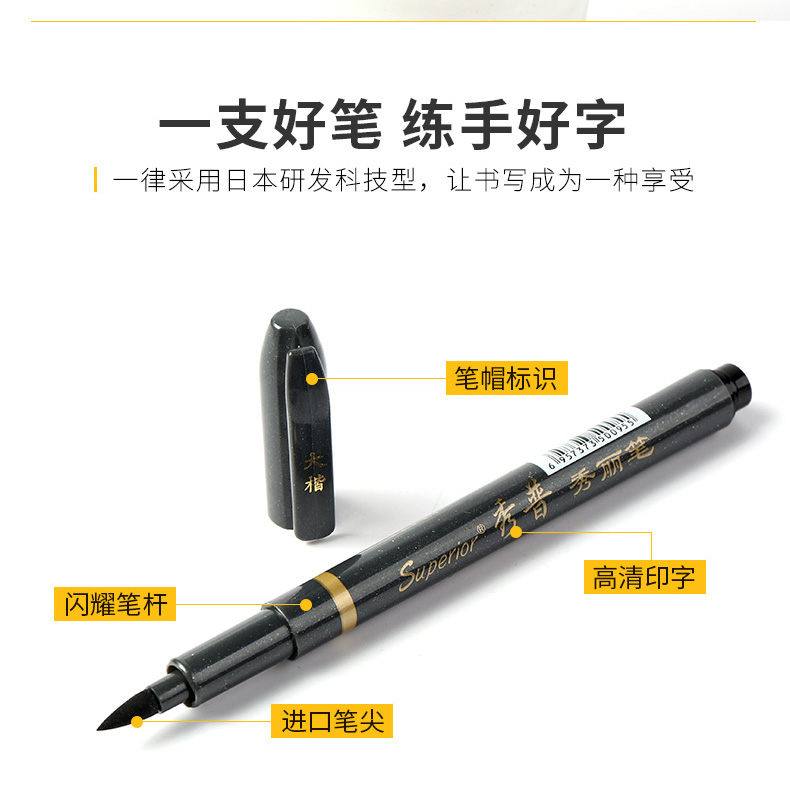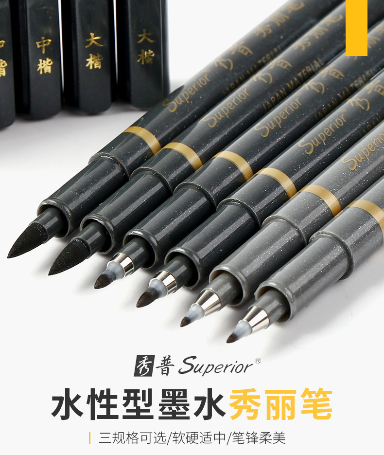 秀普秀丽笔签字笔书法笔,笔锋柔美,软硬适中,线条流畅,防水抗晒,适用于练习书法签字以及简单水墨画,三种规格软性笔头