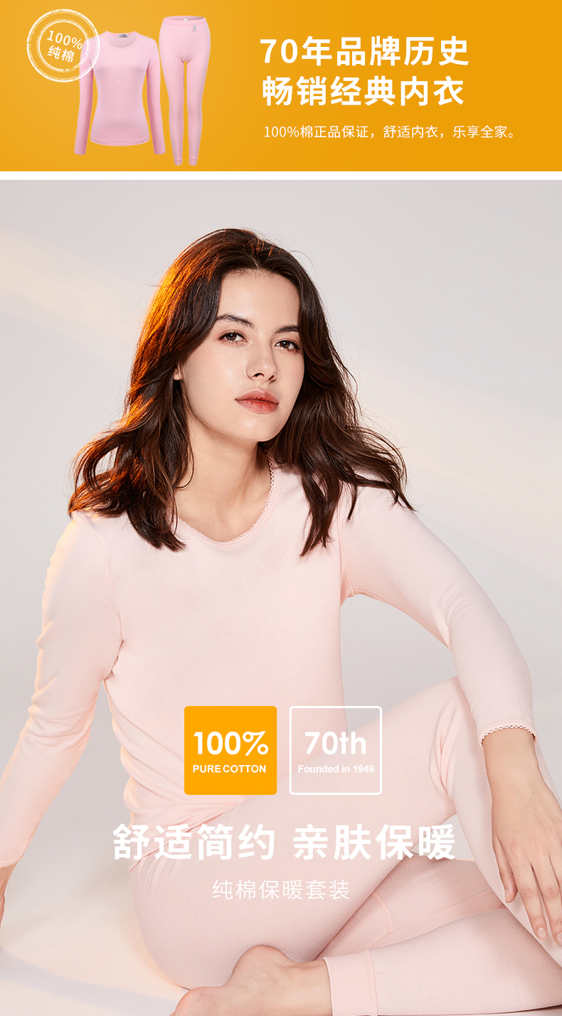 【70年老品牌,线下商场有售】纯棉圆领保暖内衣套装,采用新疆暖柔棉,柔软亲肤,蓄热保暖,温暖不臃肿,无痕隐形,修显身材,这个冬天不再怕冷!【赠运费险】