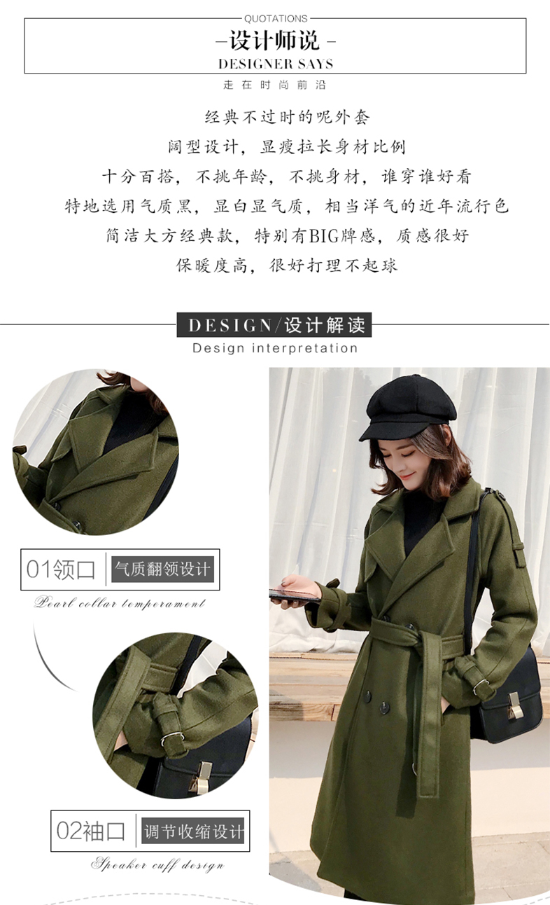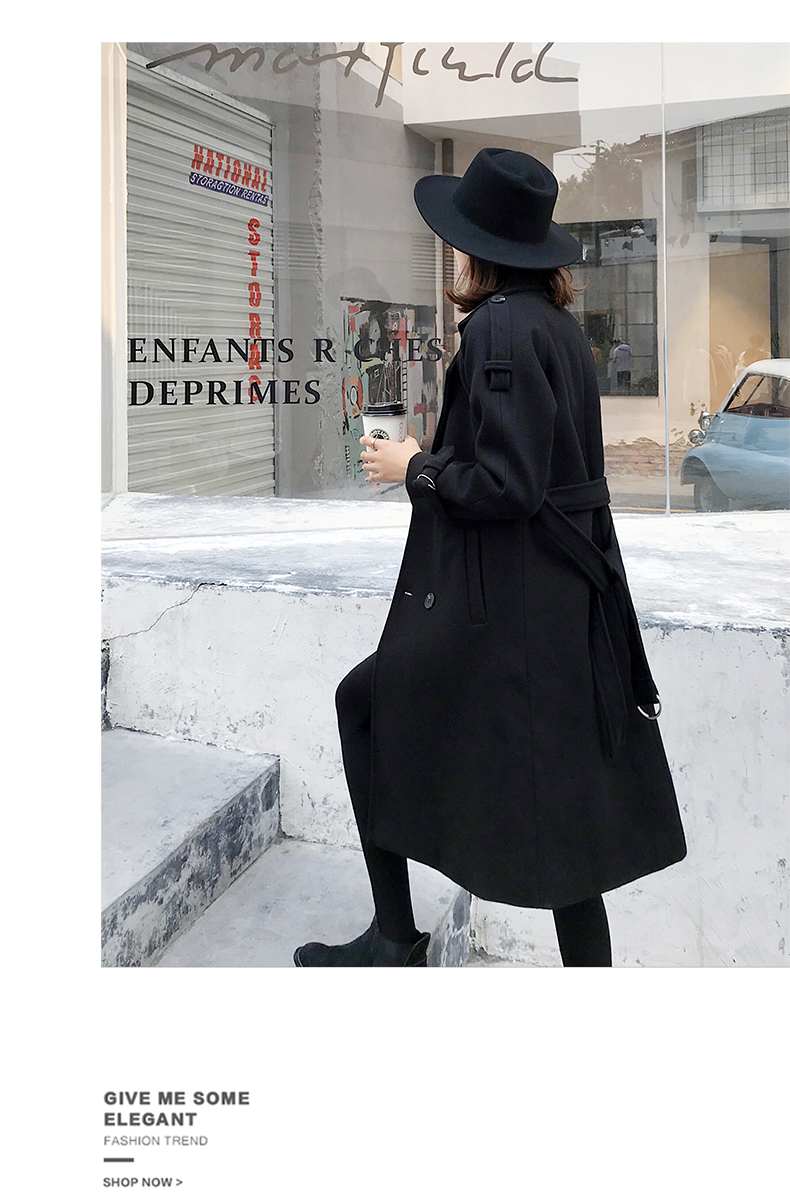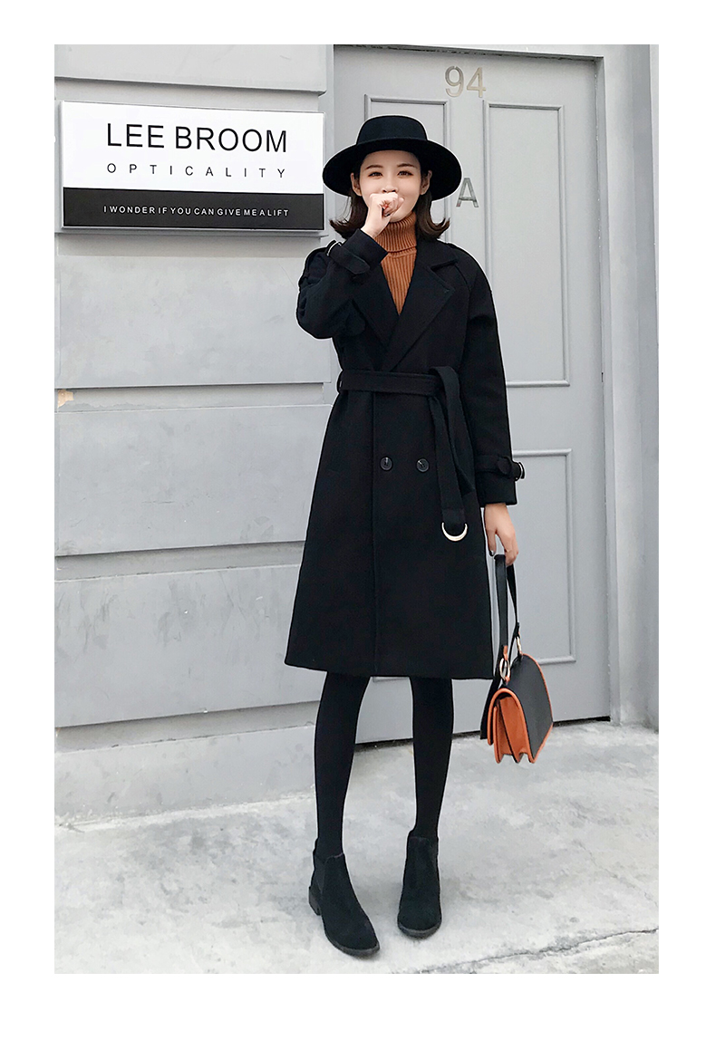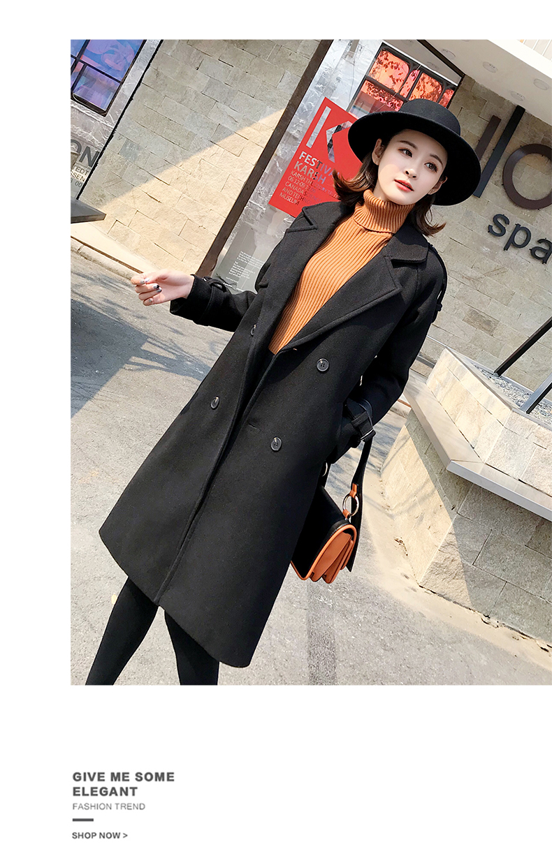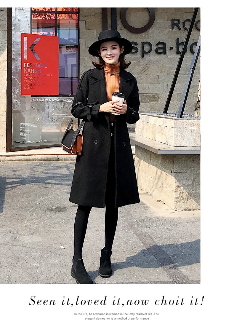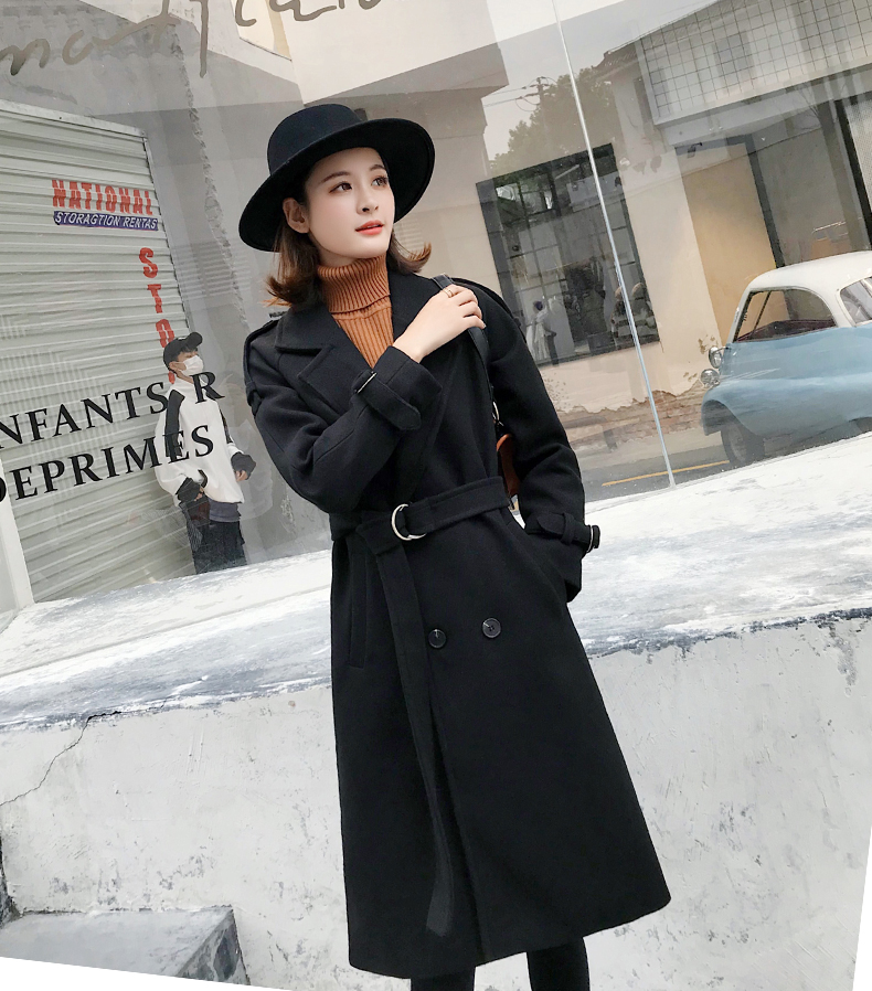 2019秋冬季韩版新款毛呢外套女中长款流行赫本风呢子大衣加厚过膝