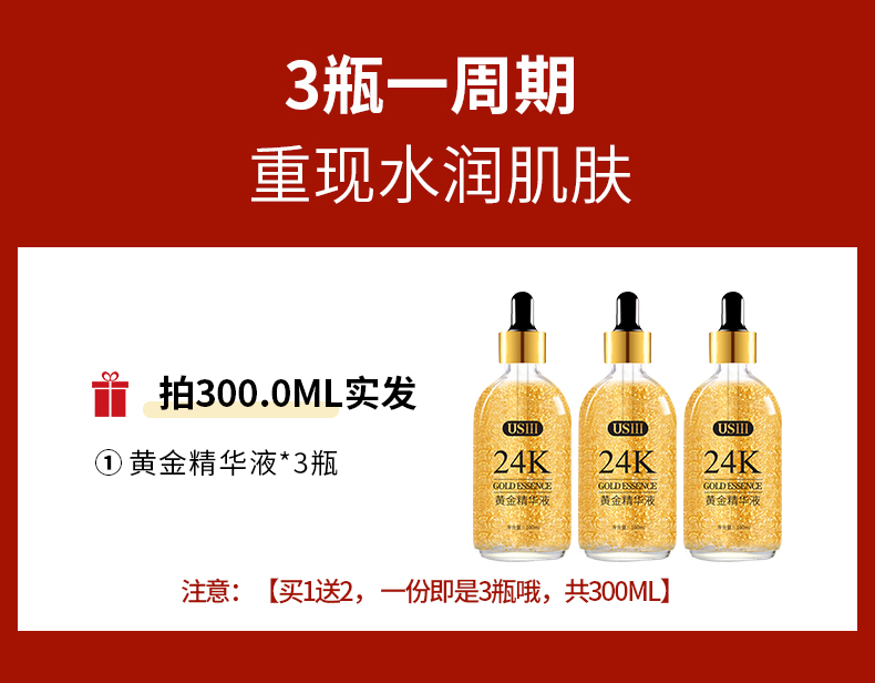 【超值3瓶装】24k黄金精华液,小红书爆款~看得见的金箔微粒,添加烟酰胺成分,去黄亮肤+紧致抗初老+淡化细纹+提拉紧致+增强弹性,扭转时光,肌肤不见年龄!