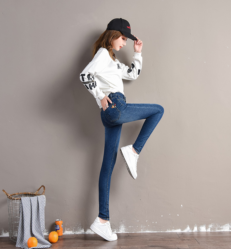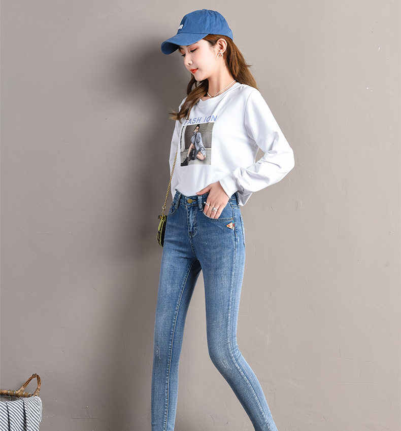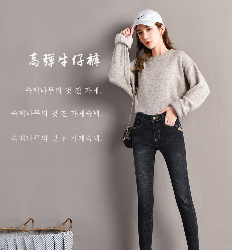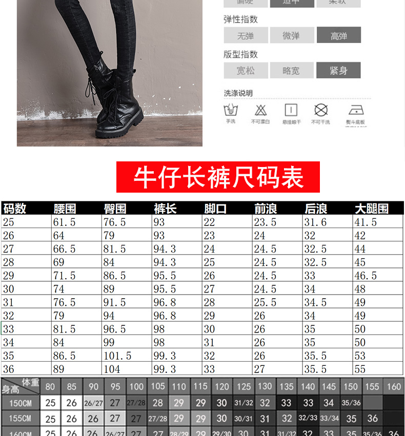 高弹力牛仔,精选面料,舒适亲肤,吸湿排汗,简约修身,修身铅笔裤,高腰显瘦,彰显性感好身材,凸显迷人气质!