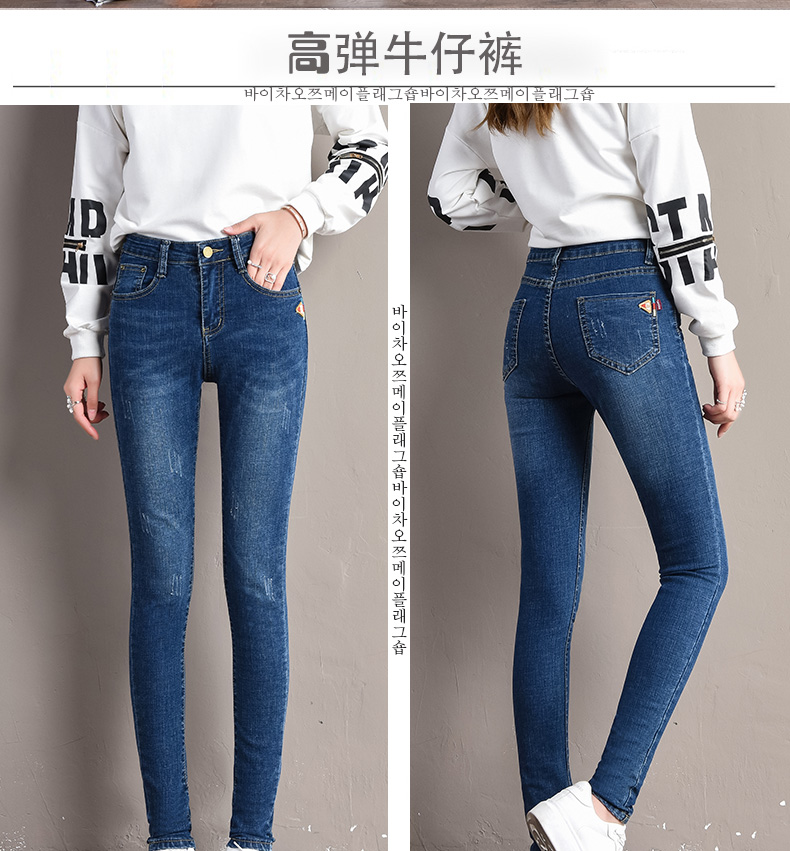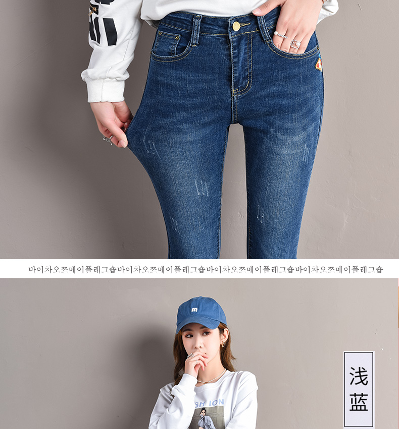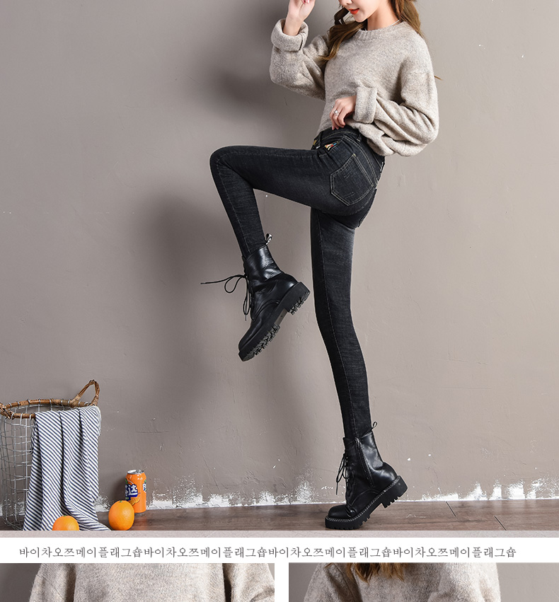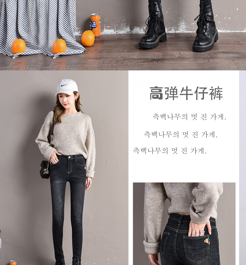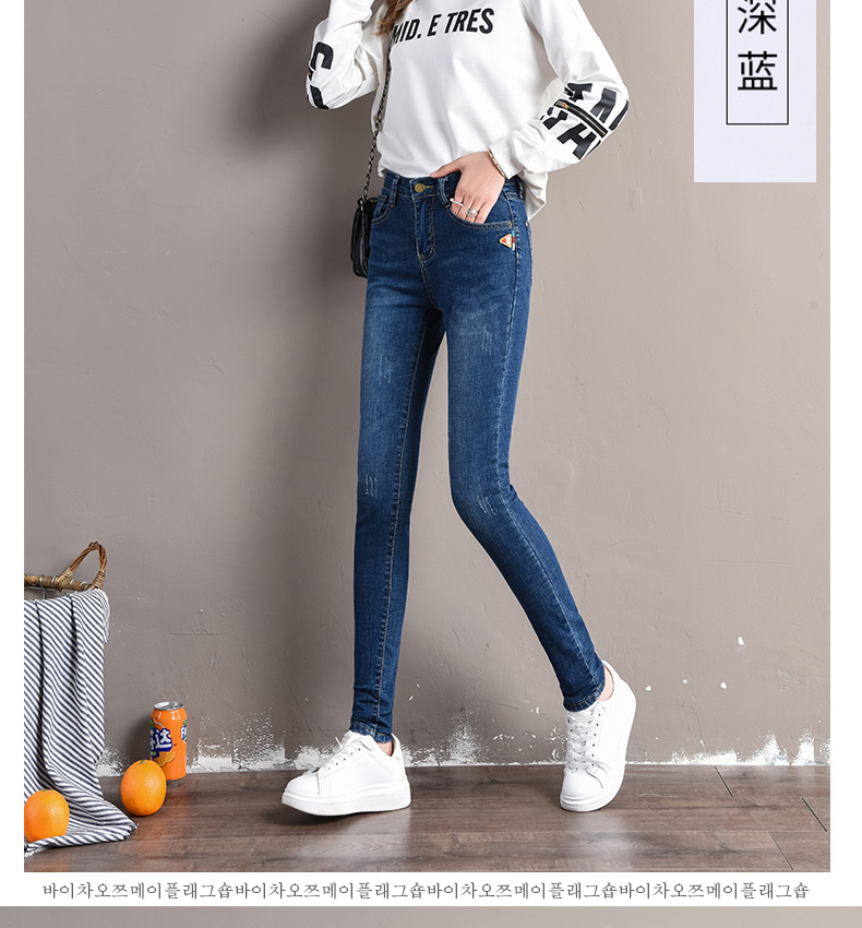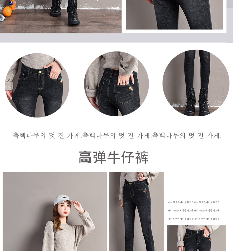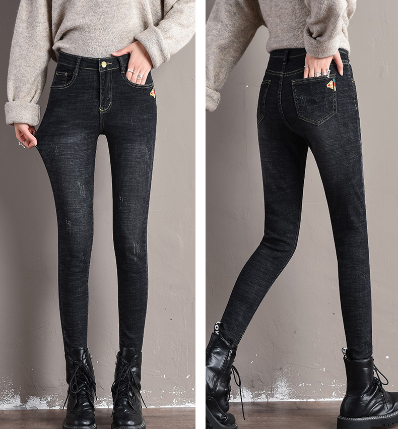 秋季高腰牛仔九分裤子女新款韩版紧身小脚铅笔裤加绒牛仔长裤子女