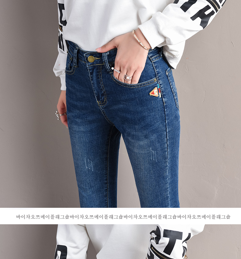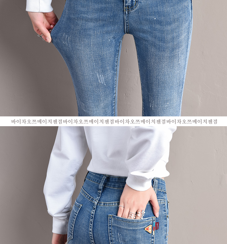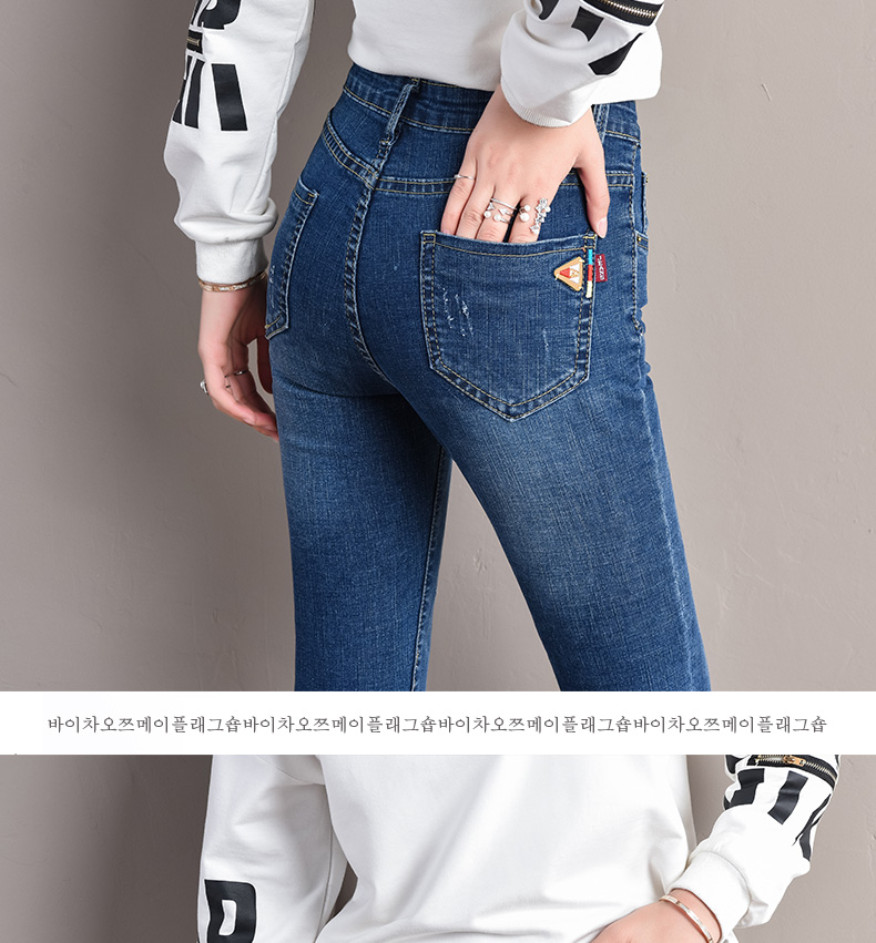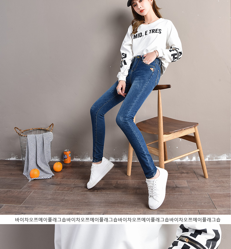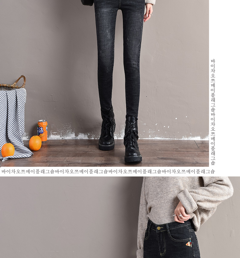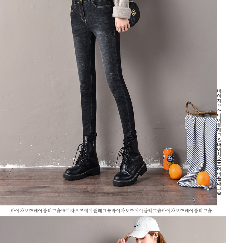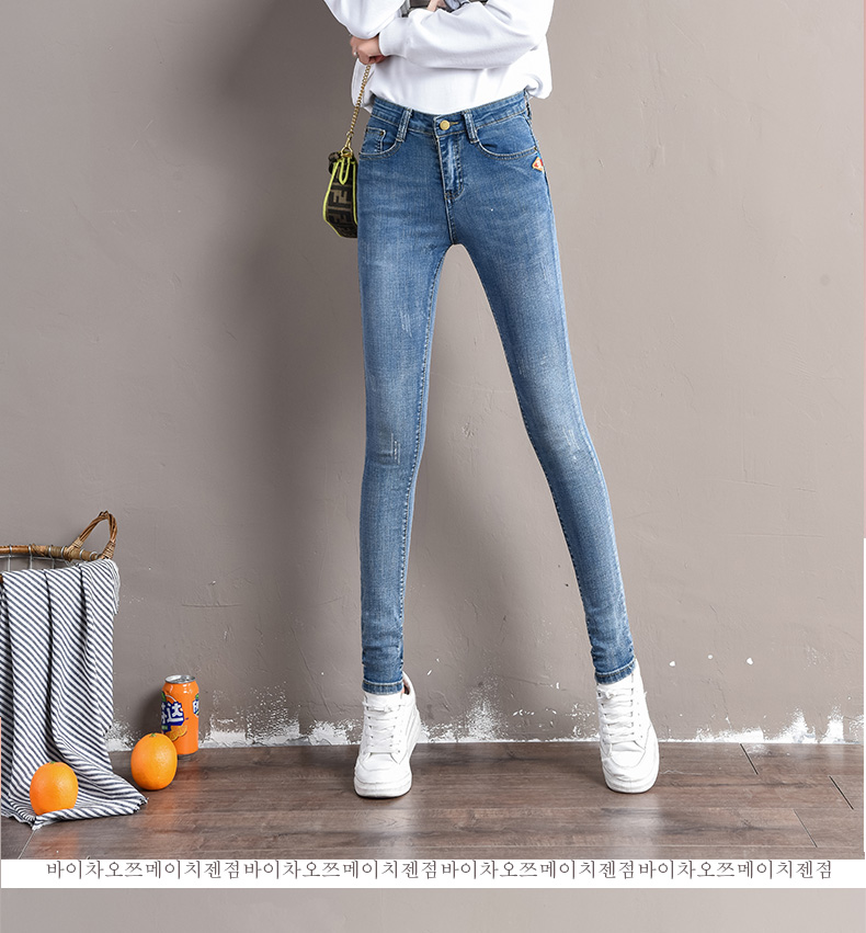秋季高腰牛仔九分裤子女新款韩版紧身小脚铅笔裤加绒牛仔长裤子女