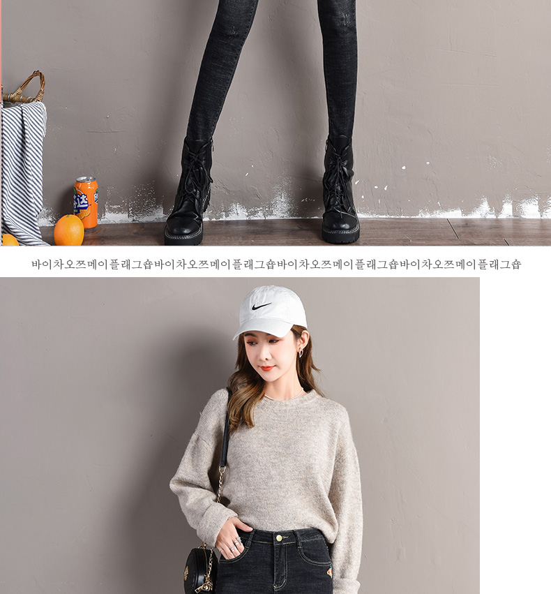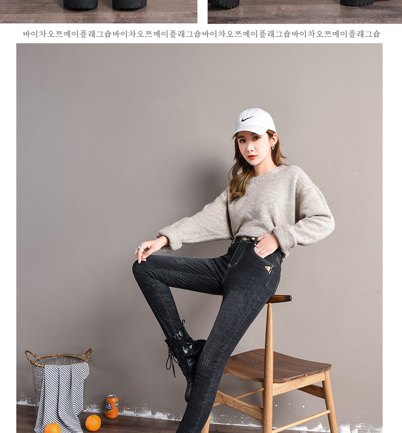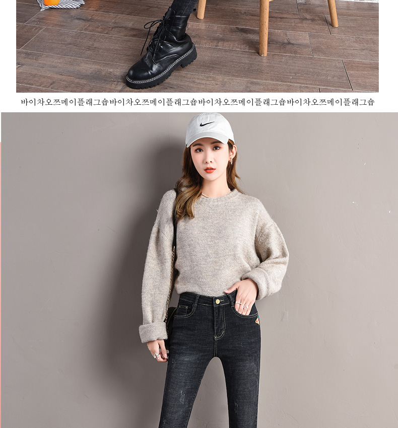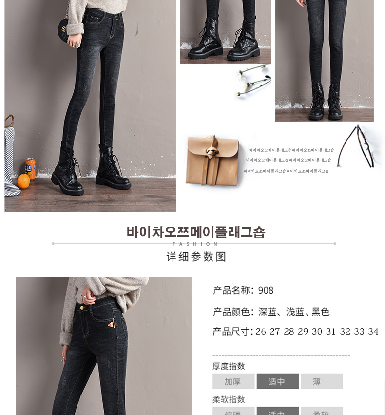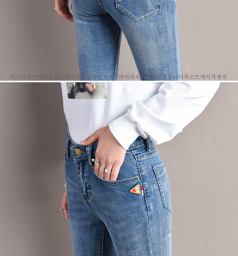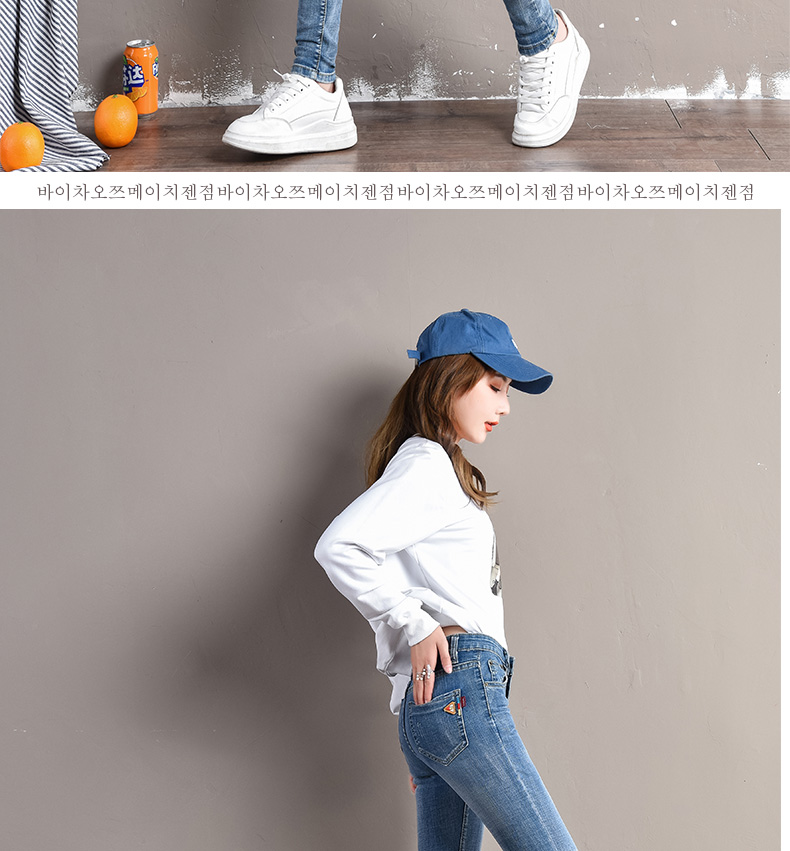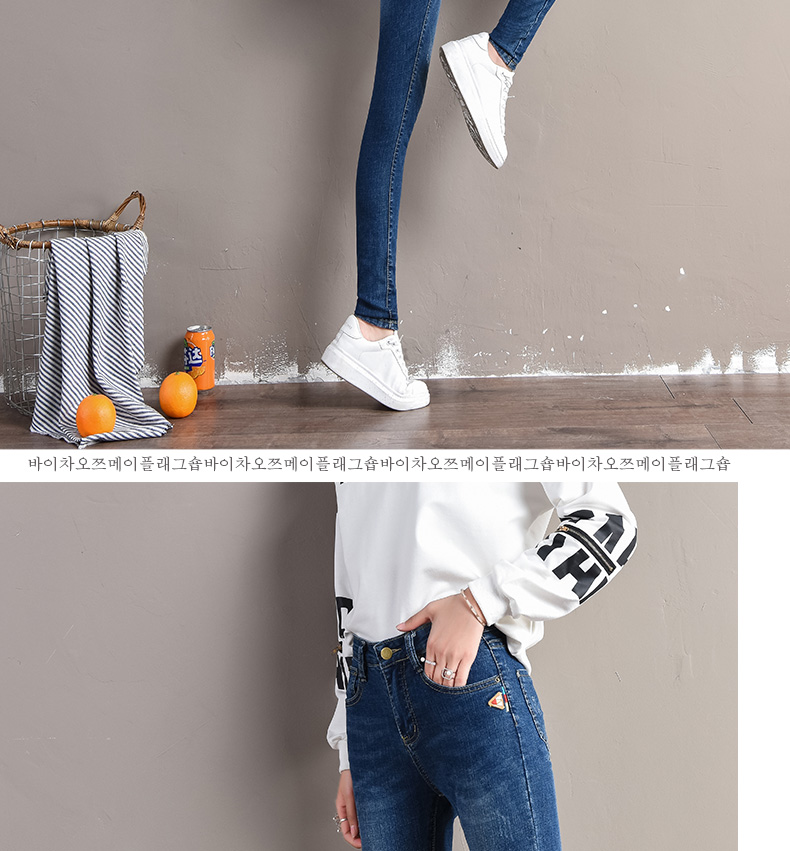 秋季高腰牛仔九分裤子女新款韩版紧身小脚铅笔裤加绒牛仔长裤子女