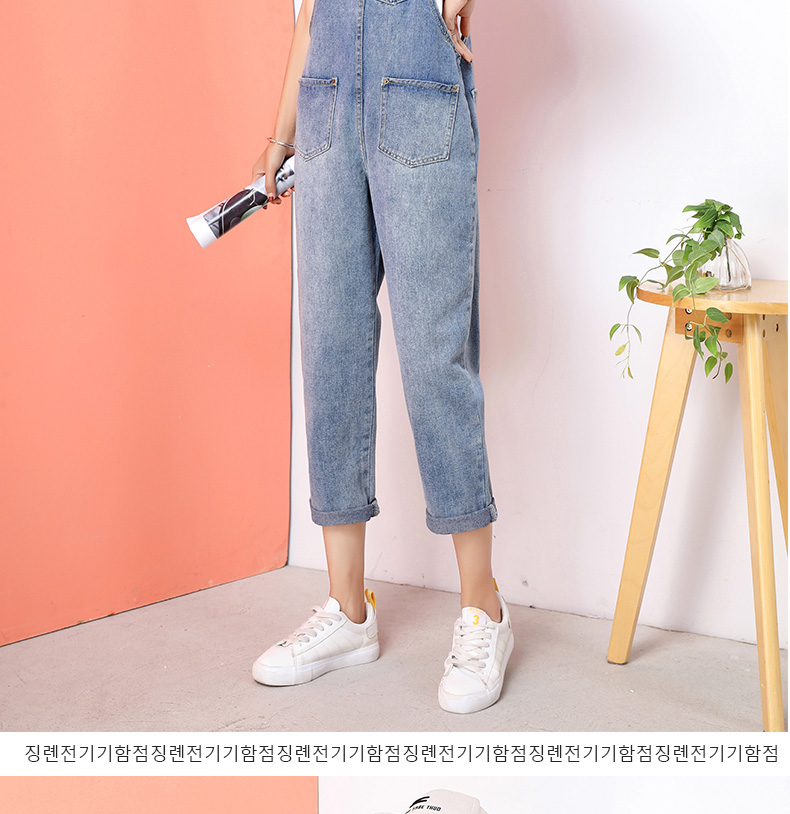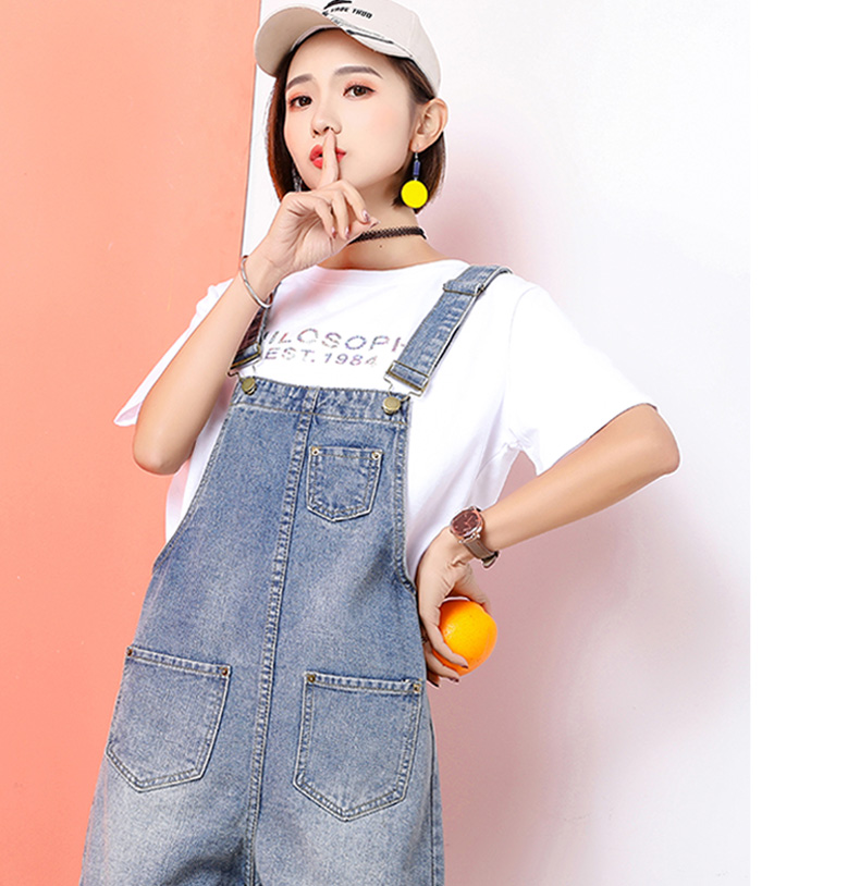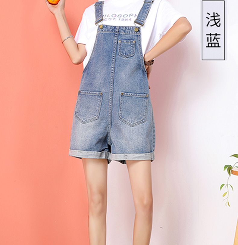 牛仔背带裤女高腰显瘦短裤夏休闲宽松九分裤直筒裤子女大码连体裤