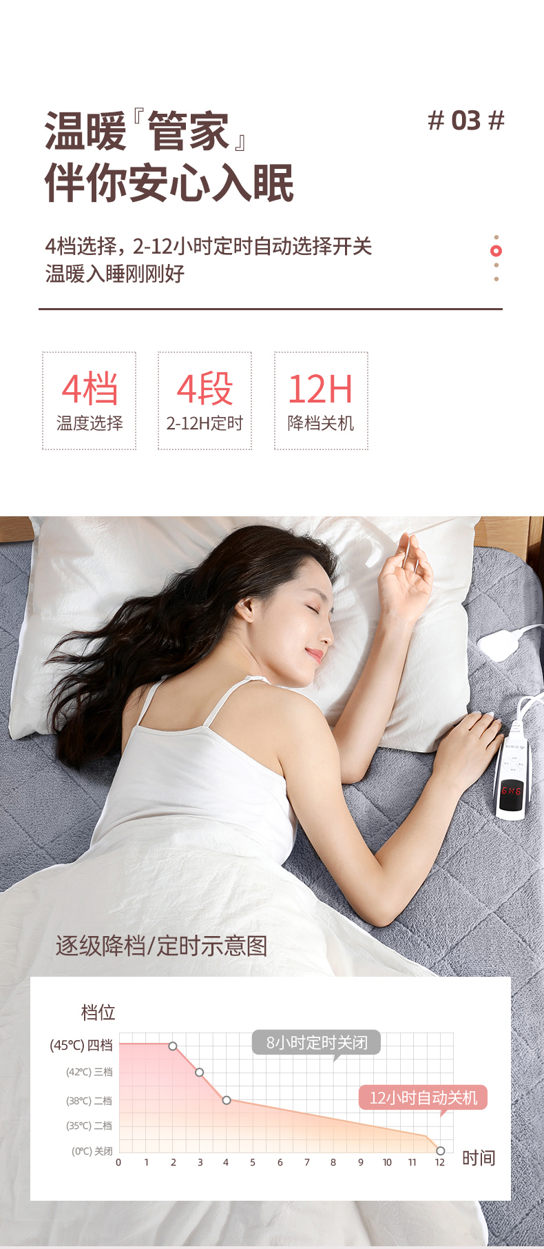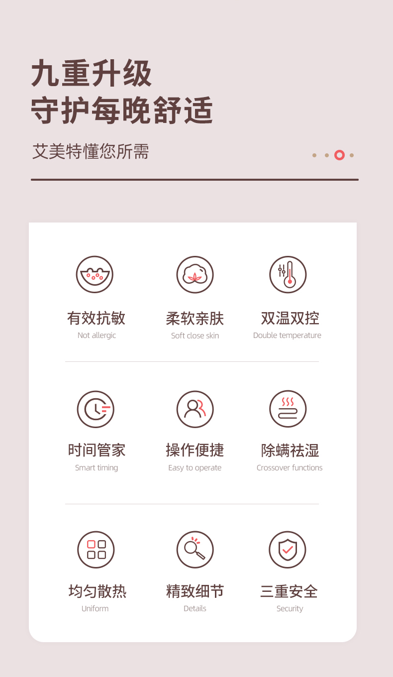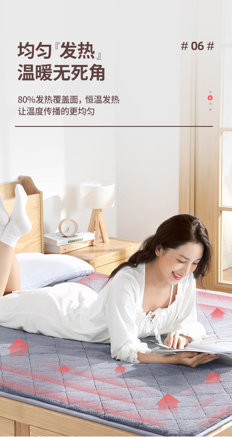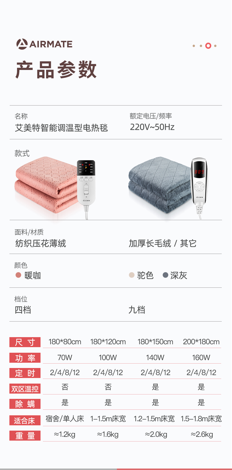 【艾美特】温和不上火的电热毯,安全防水,均匀发热,舒适安全,面料柔软细腻,保暖性强,人性化设计,不口干不上火,调温除湿,让这个冬天不再寒冷!这价格,抢到就是赚到!